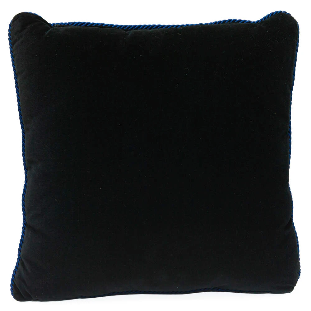 With a beautiful repeating Medusa pattern and shades of blue and black, this cushion is perfect to add an air of luxury to your home. The square cushion is well-made and high in style.