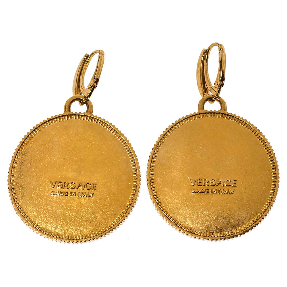 These drop earrings from Versace exude an alluring appeal and are absolutely eye-catching! They have been crafted from gold-tone metal and designed with the signature Medusa motif detailed rings. They are easy to clip-on and will prove to be an amazing buy!