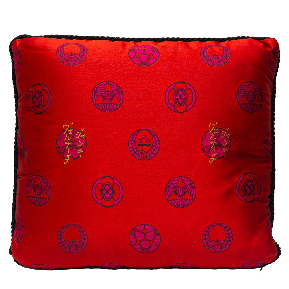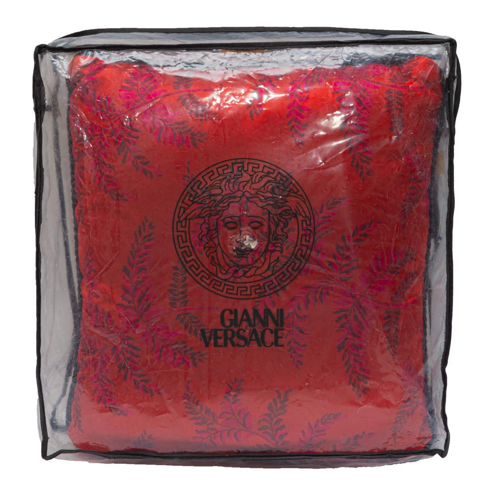 A soft, well-made cushion by Versace to add a luxe element to your home. The cushion in red has a square shape and motifs spread all over.