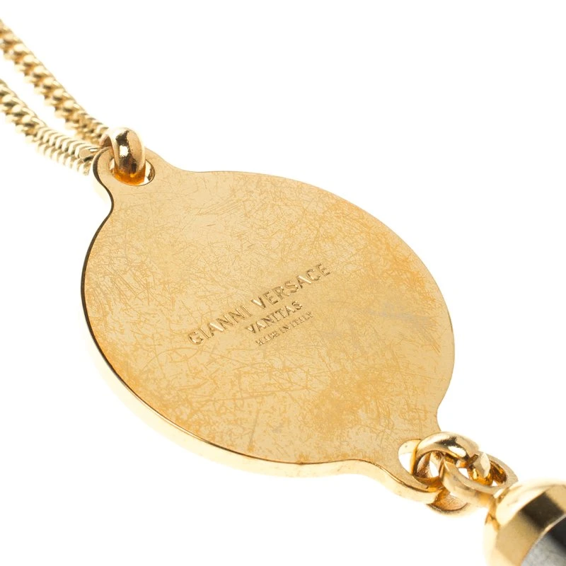 We can’t stop admiring this beauty from Versace! Beautifully crafted from a mix of gold-tone and silver tone metal, this necklace is a stunner. It has a pendant that carries the signature Medusa emblem and it is further styled with dangling chain tassels. the penadnt is held by a chain with a lobster clasp.