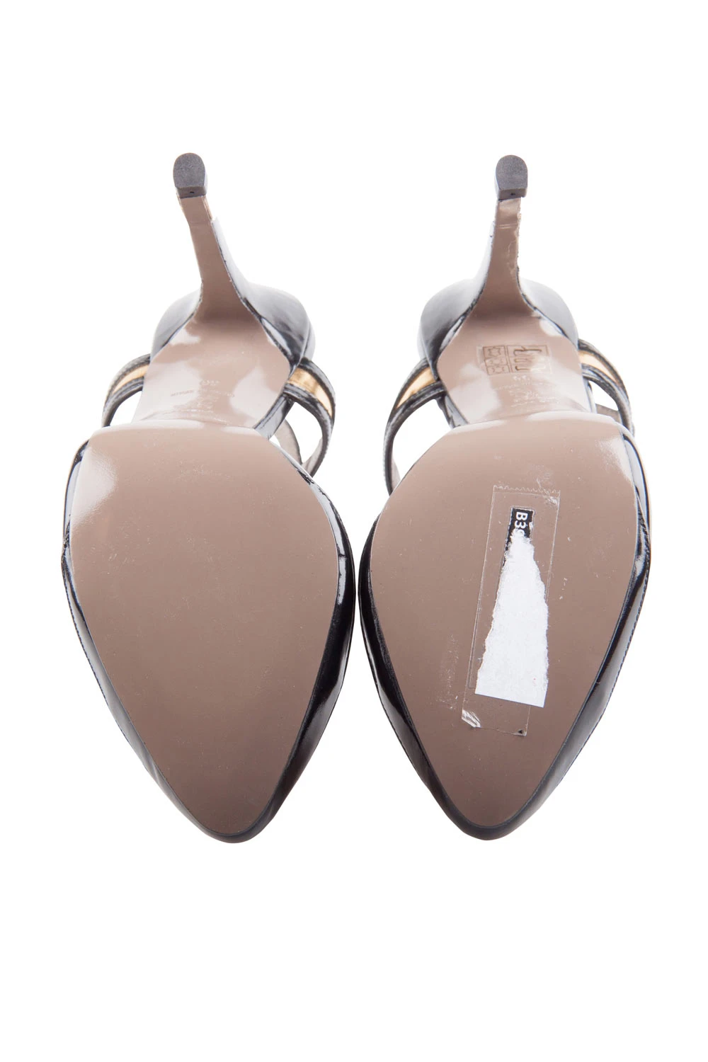 These patent leather sandals have an enticing detail on the vamps in the dual tones of black and gold. These T strap sandals feature a 13cm heel and comfortable leather insole. Who would want to miss this Versace piece? Add this to your collection now!