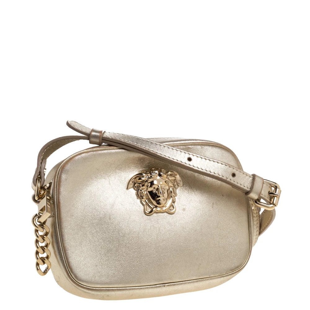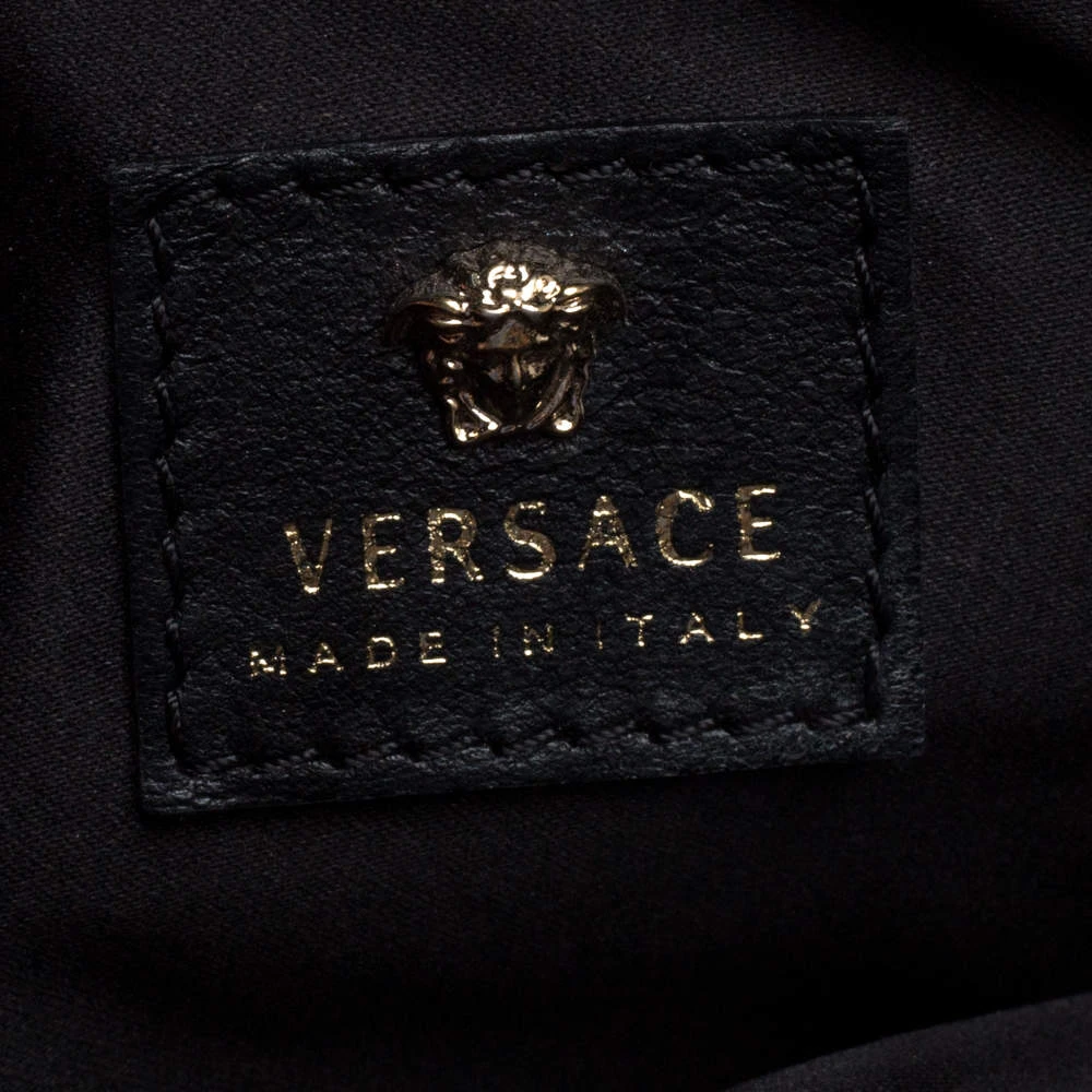 Designed to last, this beautiful bag from Versace is a prized buy. Comfortable and easy to carry, this leather creation comes in metallic gold with the Medusa emblem on the front. It has a shoulder strap and an interior lined with satin to keep your essentials organized and safe.