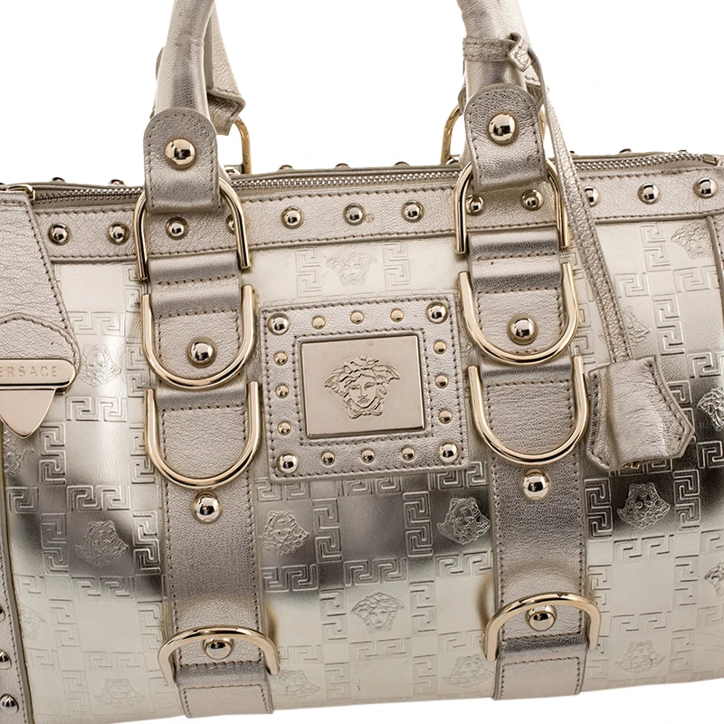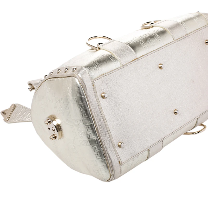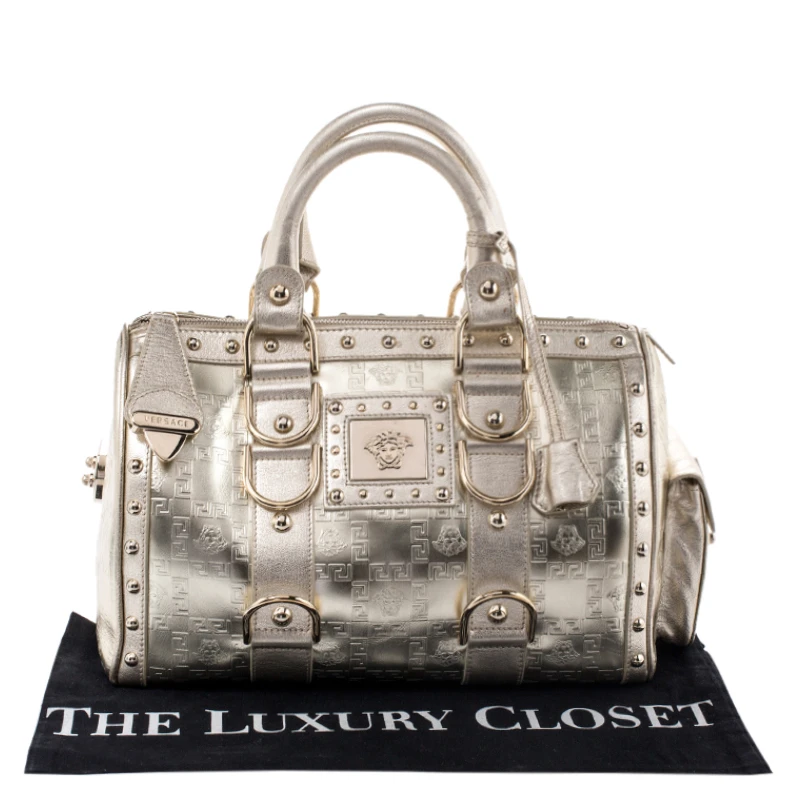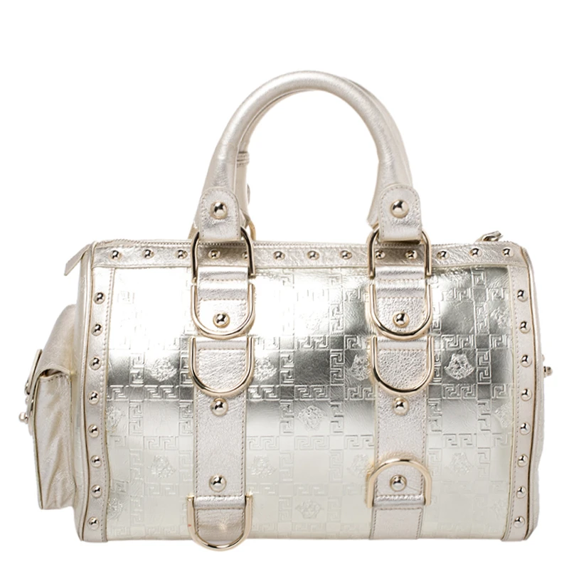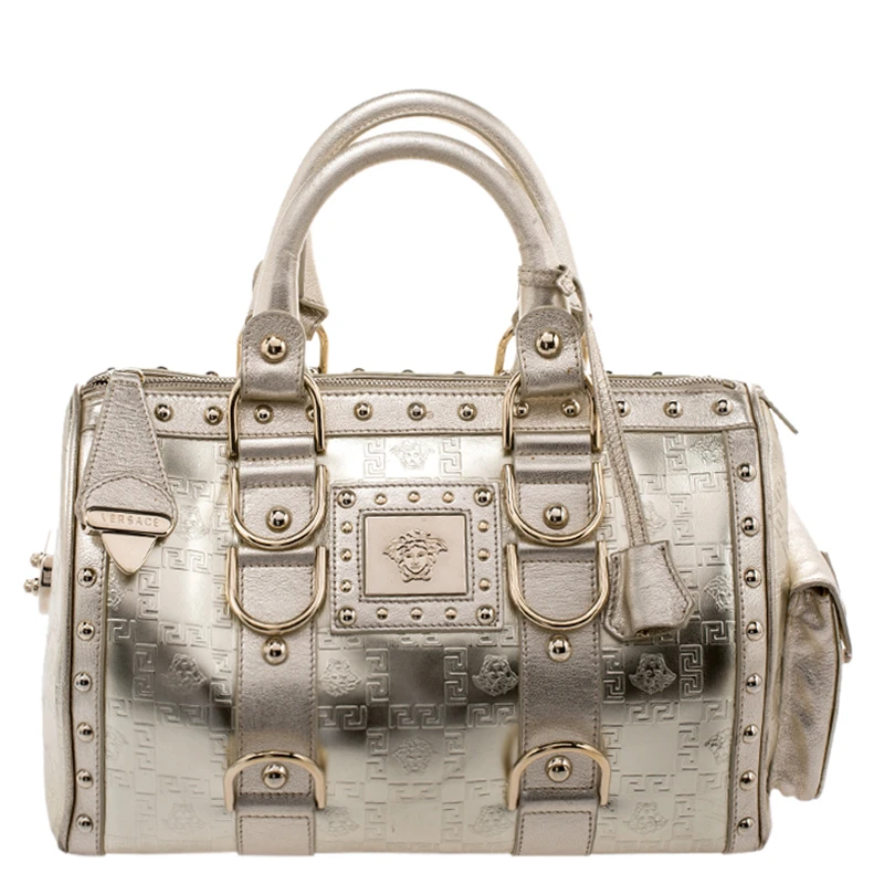 How gorgeous is this satchel from Versace! It carries an outstanding design and a fabulous interplay of leather and gold-tone hardware. It has a top leading to a fabric interior while being held by two top handles. The shape and the brand logo on the front just uplift its beauty and makes it a buy you will not regret.