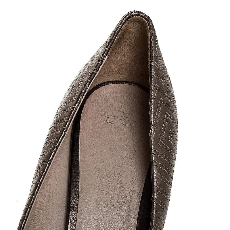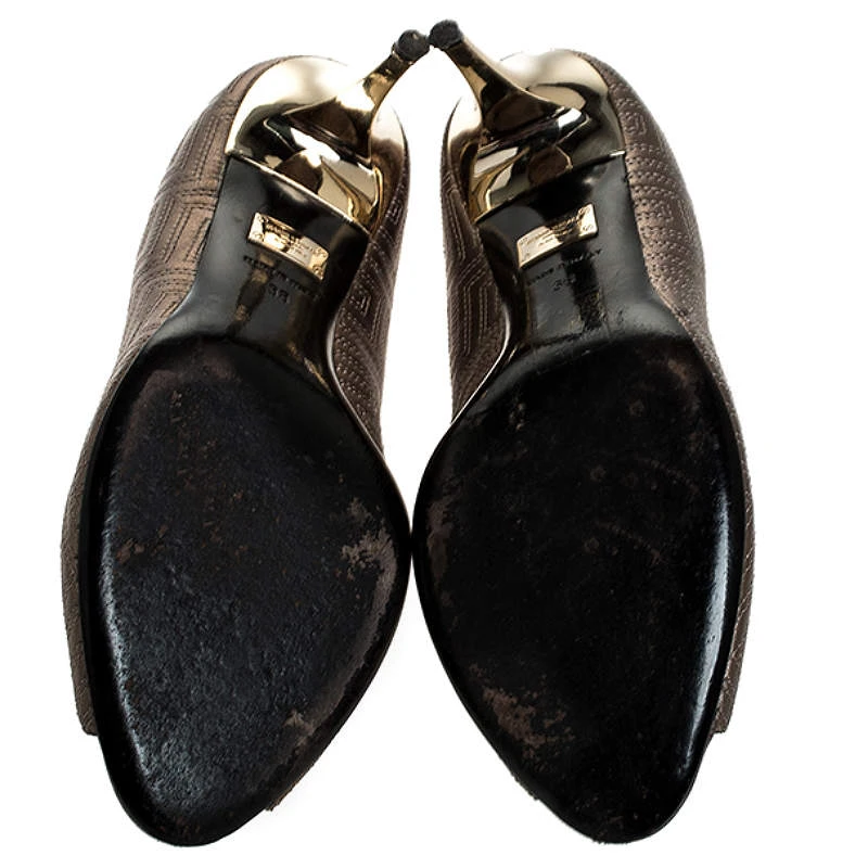 The right pair of shoes does not only make a woman look fabulous, but also gives her confidence. These Versace pumps, made from embroidered leather carry elegance and wonder in their design. They are accompanied by peep toes and 8 cm heels supported by platforms.