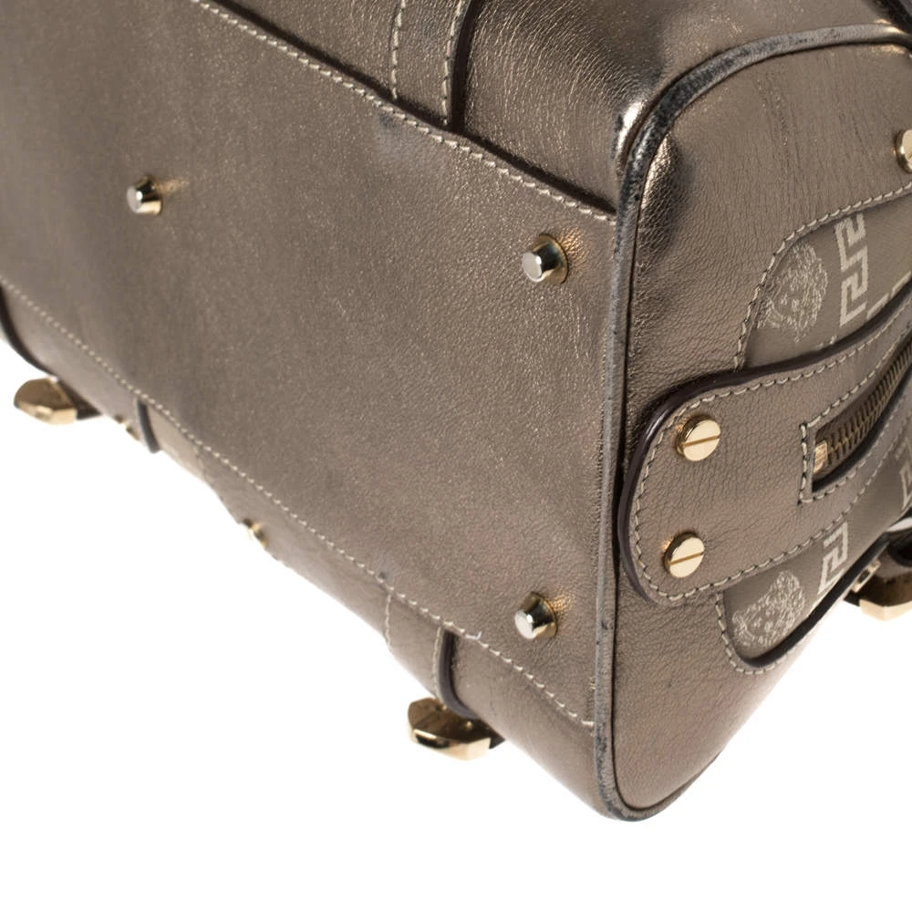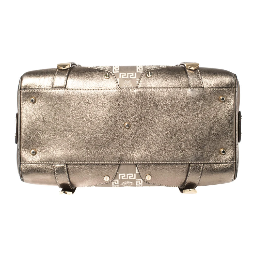 Sophisticated and luxe, this bag from Versace definitely needs to be on your wishlist. The bag is crafted from jacquard fabric & leather in a metallic grey shade and it features a structured silhouette. It flaunts dual handles and the famous Medusa logo on the front. The spacious satin interior has enough space for essentials.