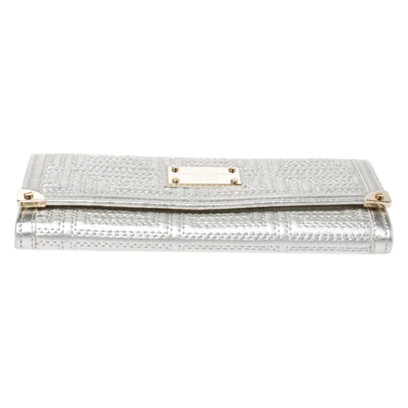 This bag from Versace will make sure you are the centre of attention wherever you go. Crafted in Italy, it is made from leather and comes in a lovely shade of metallic white. It is styled with a quilted pattern, front flap, brand plaque, satin-lined interior, zip pocket, multiple card slots, gold-tone hardware and a chain-link strap.