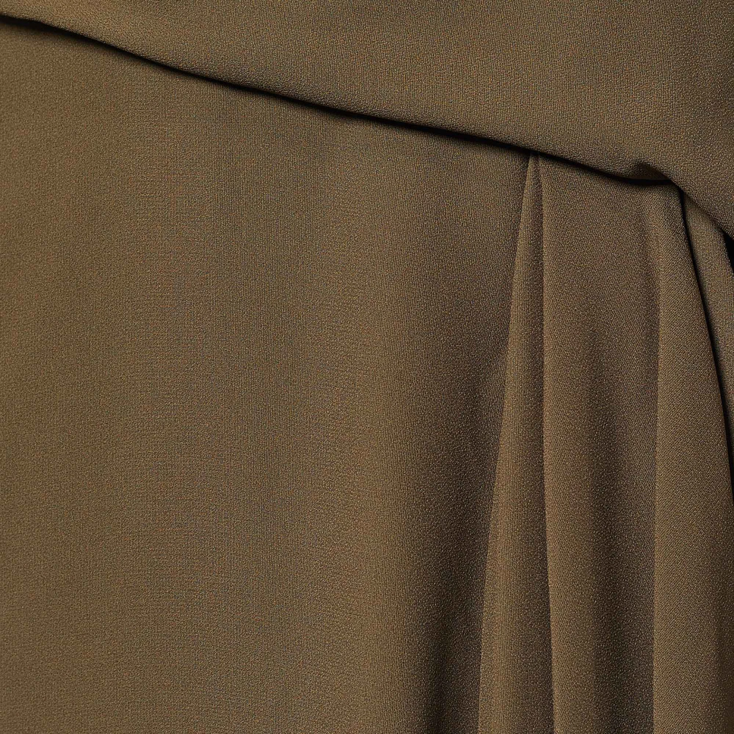 Look stylish and classy as you don this skirt from the House of Versace. It is fashioned in moss-green crepe fabric into a knee-length silhouette. It flaunts draped formations and comes with a zipper for fastening. Wear this Versace skirt with lacy blouses or shirts to achieve a chic style.