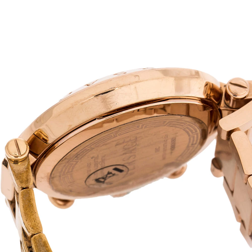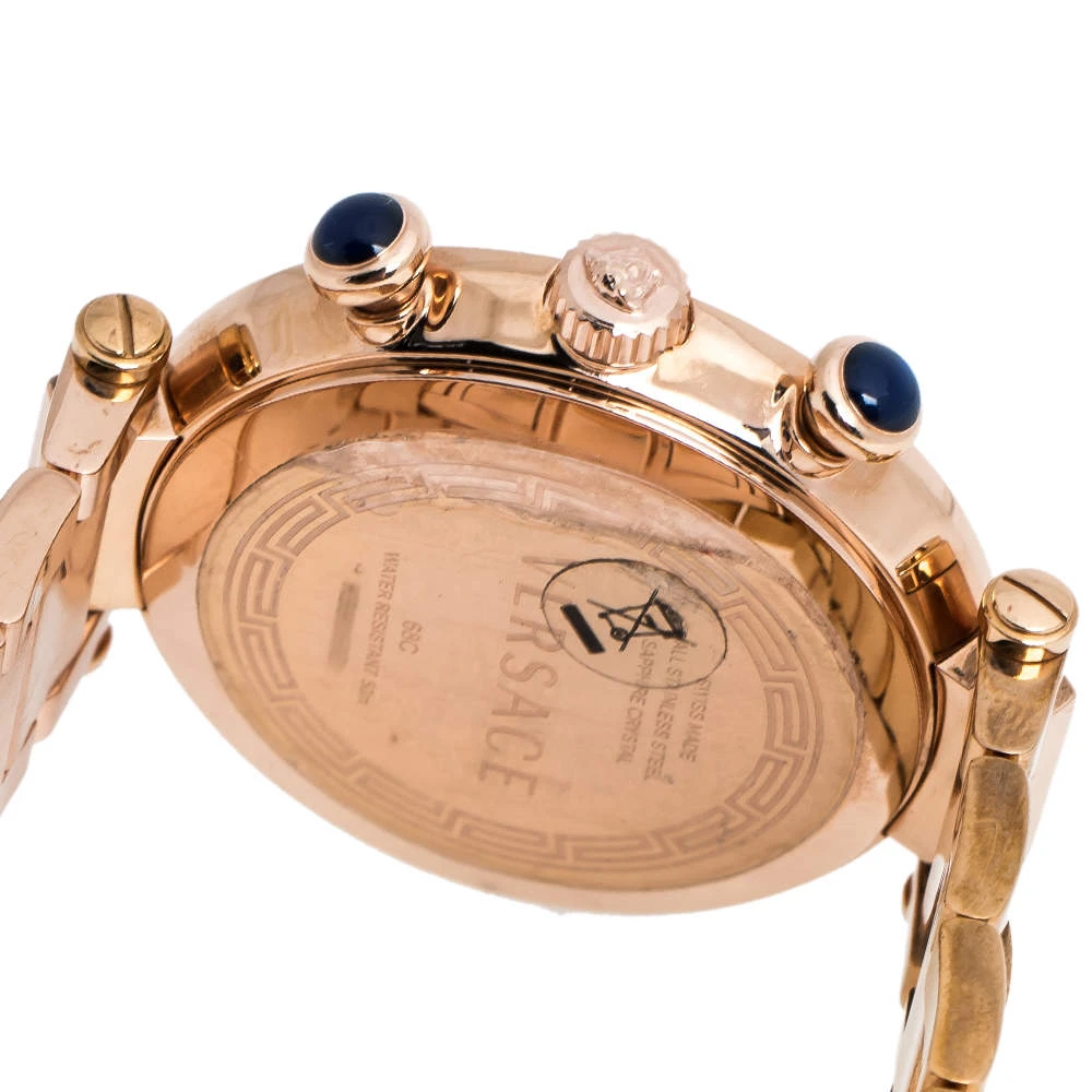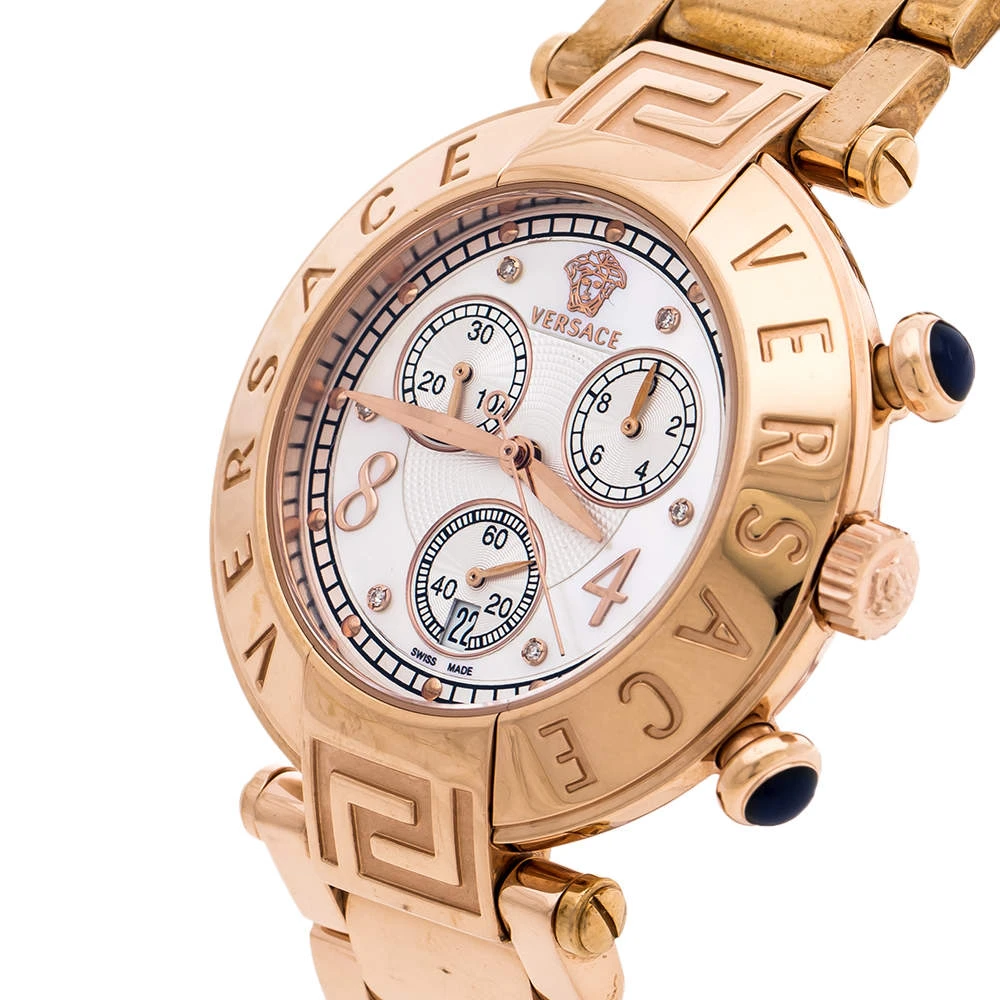 A sleek, sophisticated watch such as this Versace Reve watch deserves a special place in your watch collection. Timeless and versatile, this timepiece can be worn for any occasion. It features a Versace engraved bezel and fitted within is a round dial. The dial features three hands, the Medusa logo at twelve o’clock position, a date window at six o’clock position and three subdials. This stunning piece is finished with a bracelet strap and a clasp closure. Make it a part of your everyday looks.