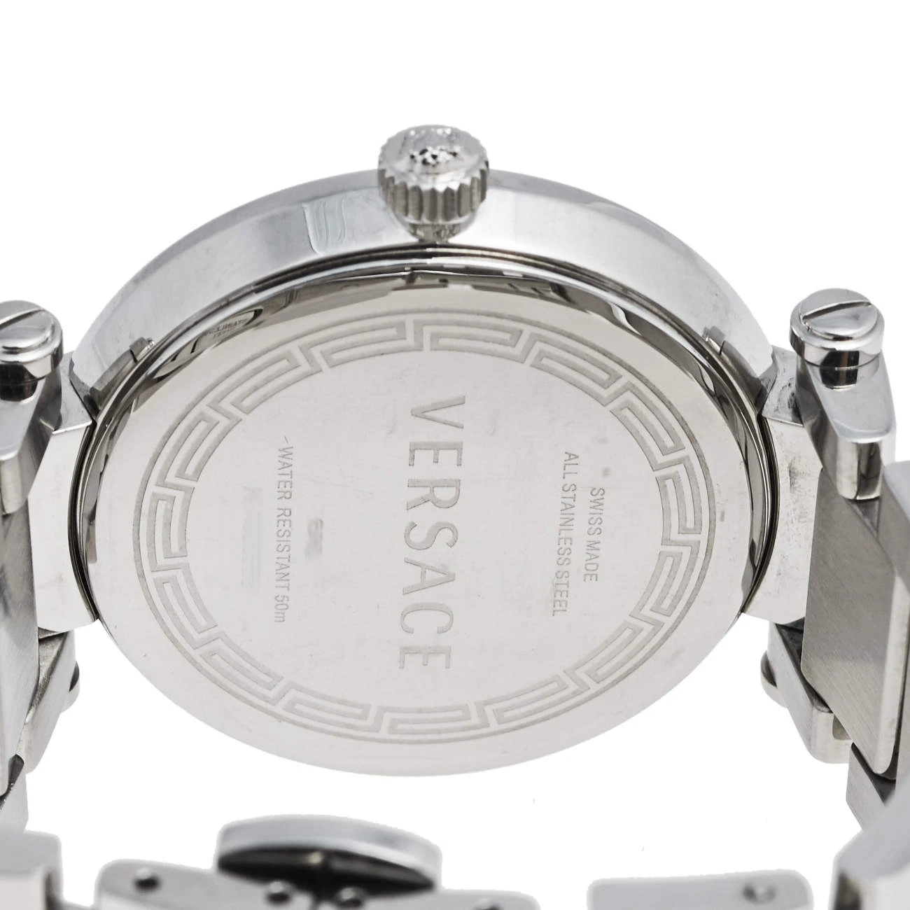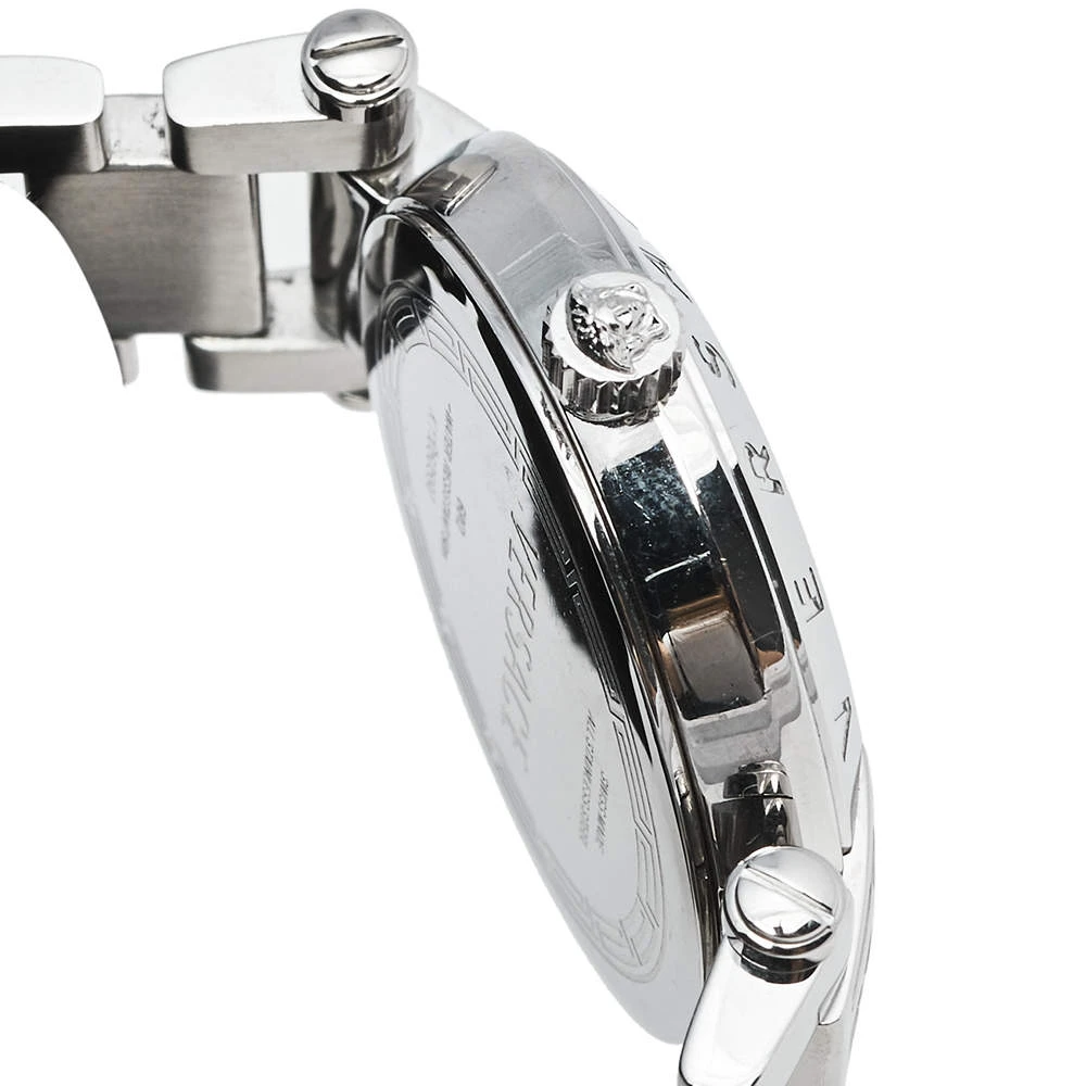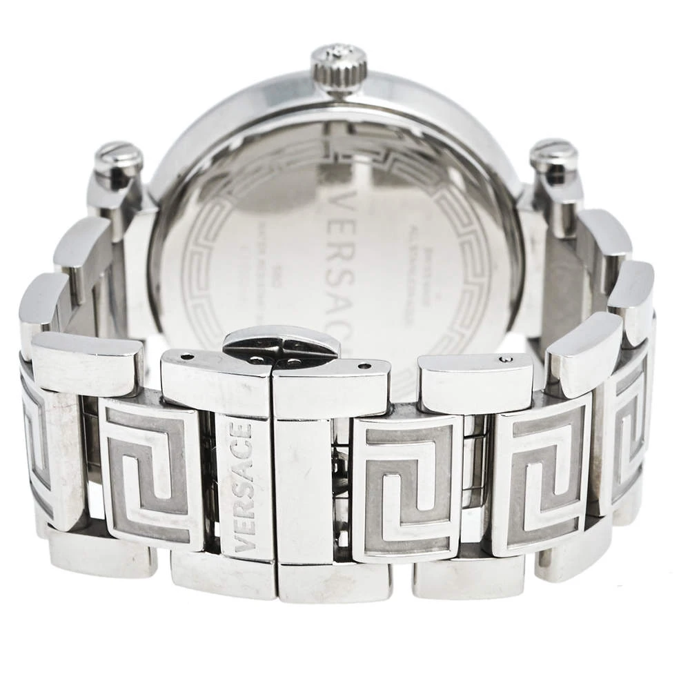 Crafted with beauty using stainless steel, the quartz watch by Versace is held by a link bracelet. It brings a Mother of Pearl dial set with Arabic numeral and stud hour markers and the Medusa logo at the 12 o’clock position. Complete with water resistance of 50 meters, this gorgeous watch is a creation you will love to flaunt.