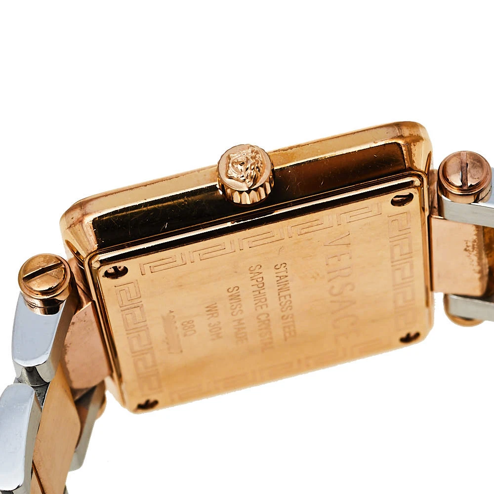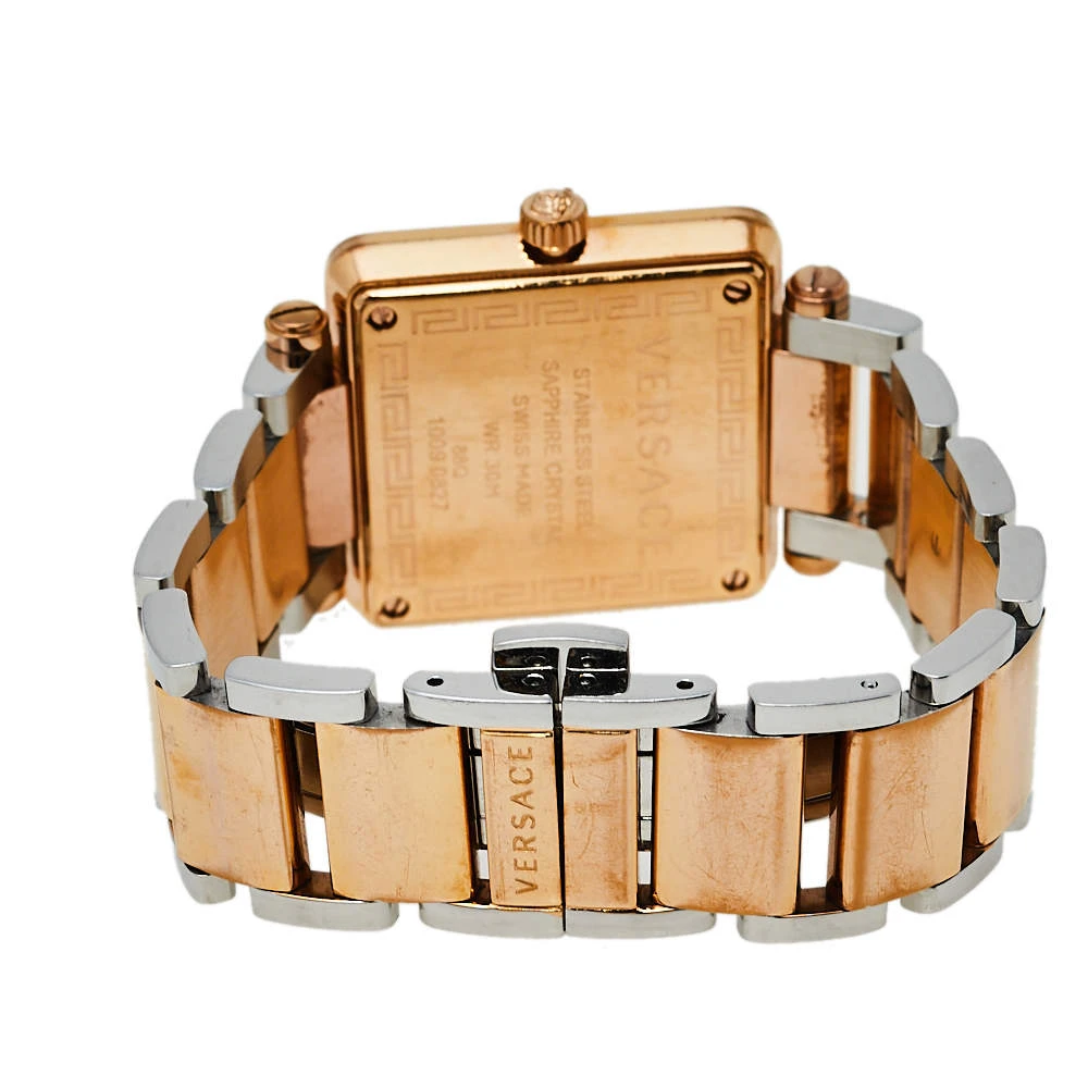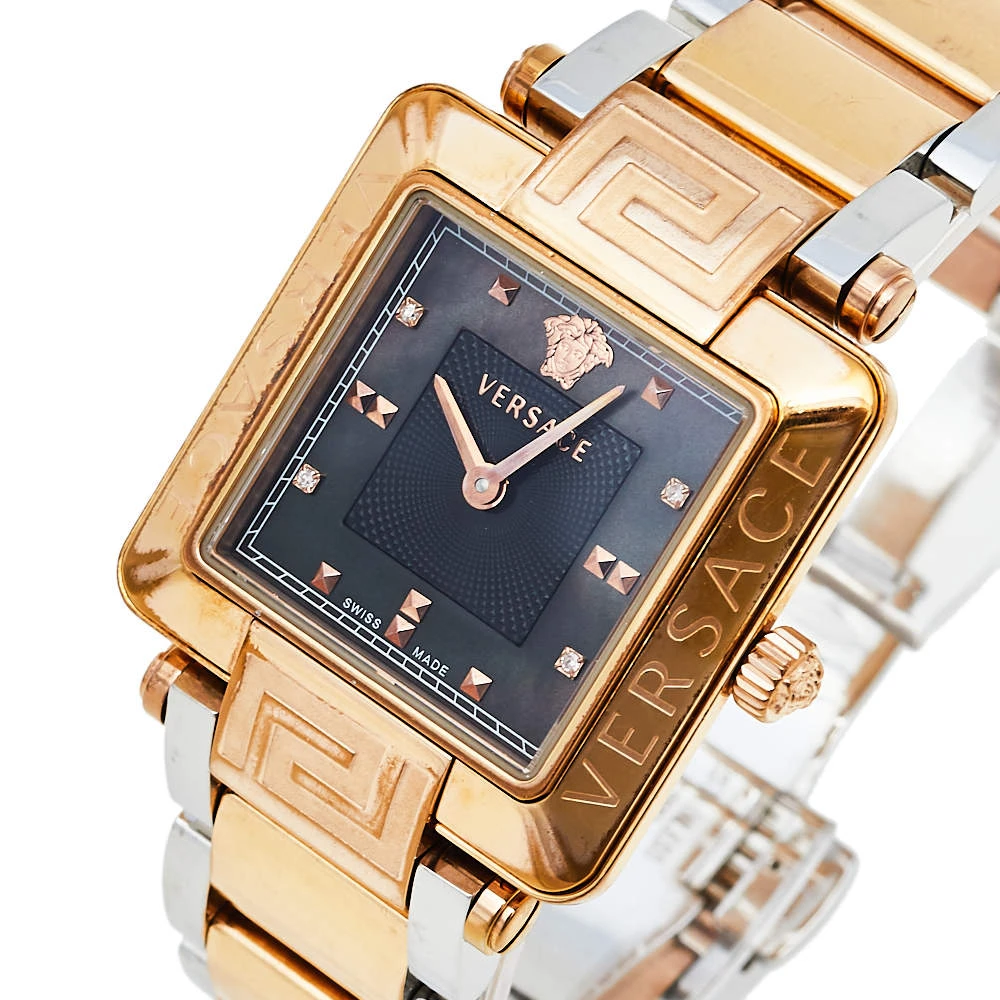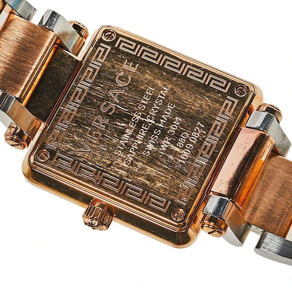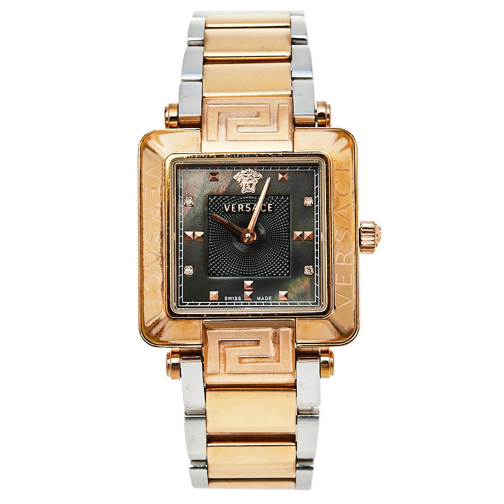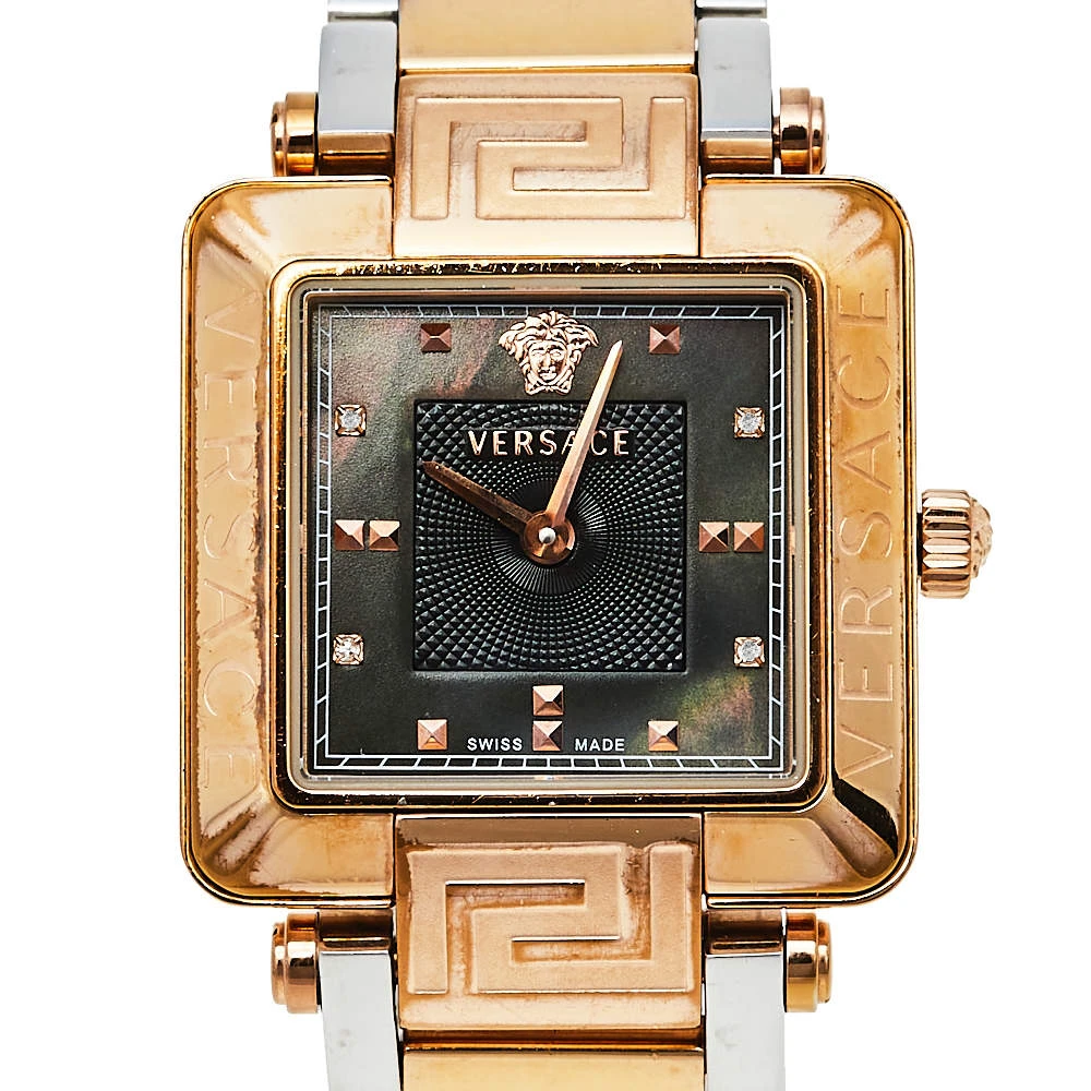 This Versace watch deserves to be added to your watch collection. Timeless and versatile, this watch can be worn for any occasion. It features a square mother of pearl dial and features two hands, markers, and the Medusa motif at 12 o’clock. This stunning piece is finished with a two-tone stainless steel chainlink bracelet. Make it a part of your everyday looks. (Note: The item may be restricted for shipping outside the UAE. Please contact us on [email protected] to check if the item can be shipped to your country.)