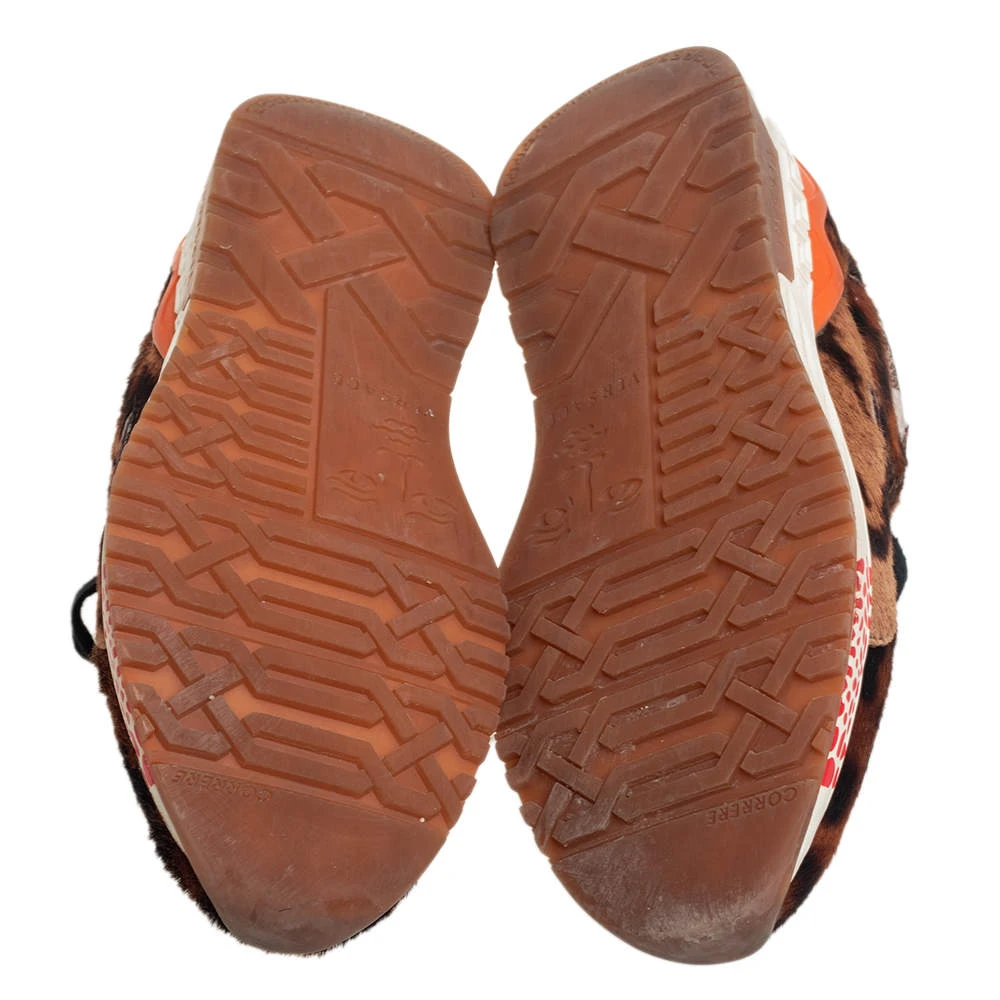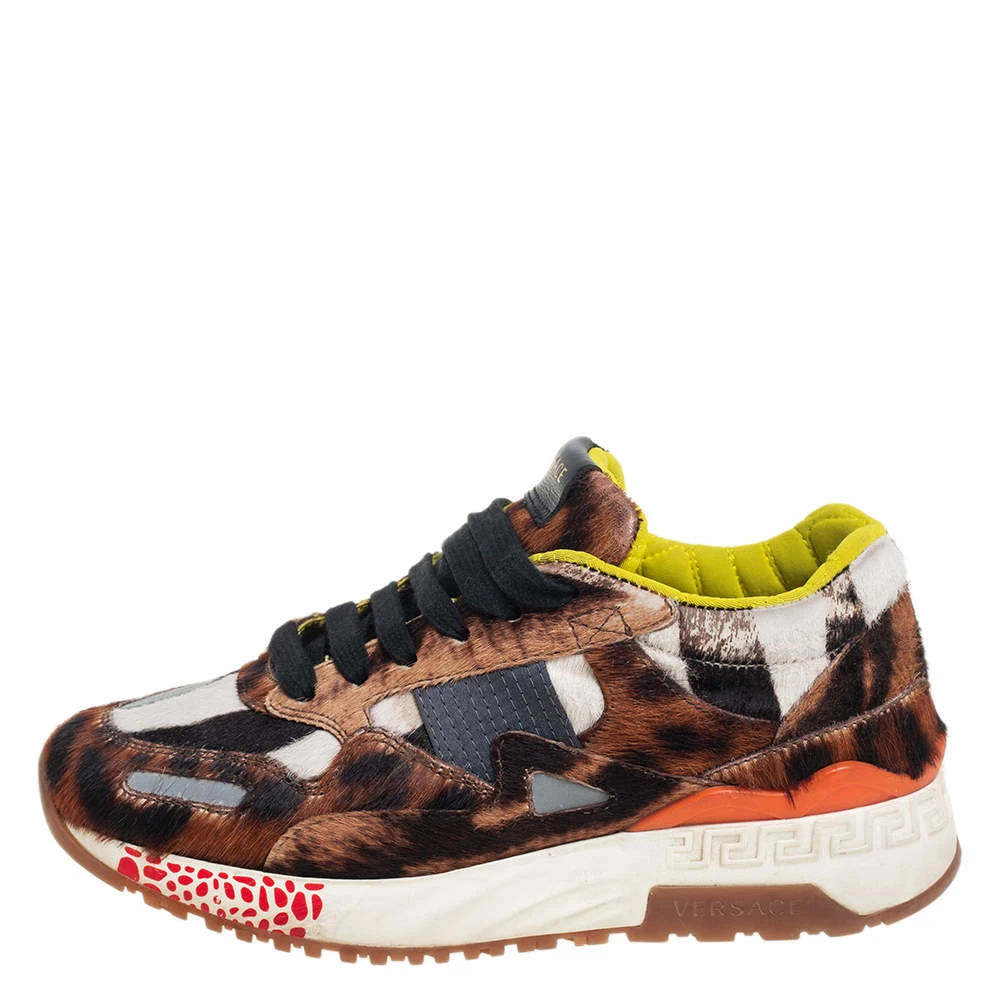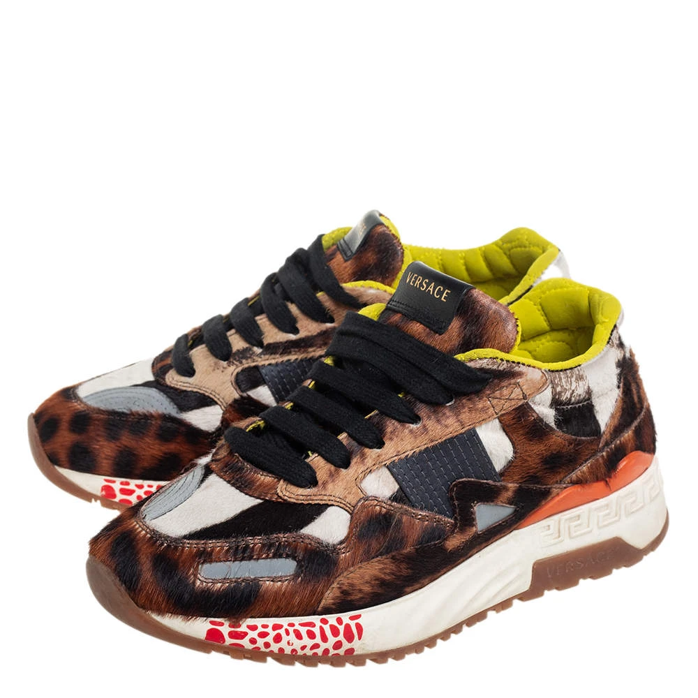 These sneakers by Versace are designed in a low-top profile using fur and leather. Finished with lace-ups, durable soles, and animal prints, this pair is high in comfort and style, just perfect to be worn by you.