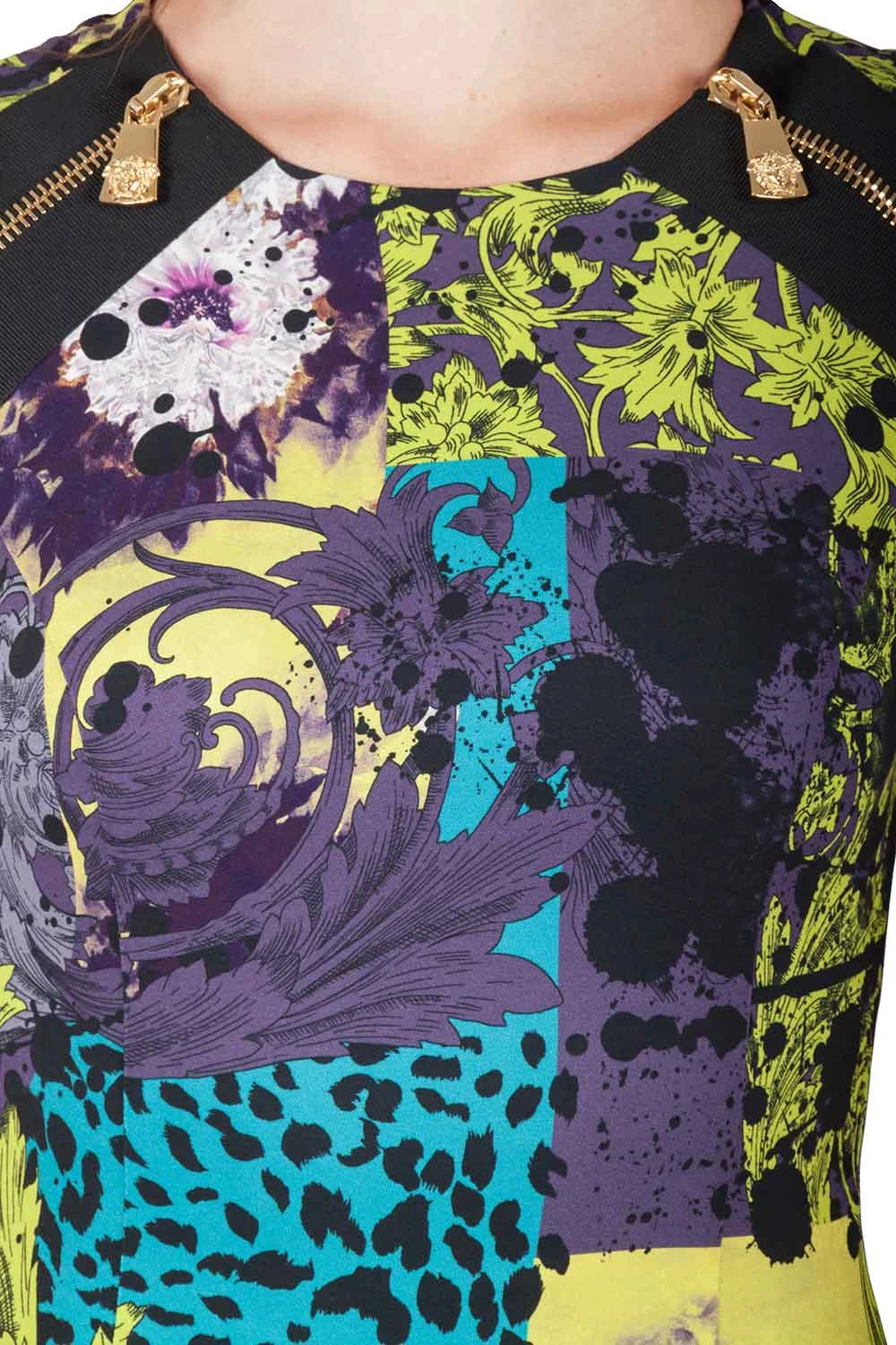 Designed with gold-tone Medusa zip trims, this pencil dress makes a remarkable statement. It is great to wear at work, parties or even casual outings. The multicolor sleeveless dress by Versace features baroque print. Team it with strappy flats and braided hairstyle.