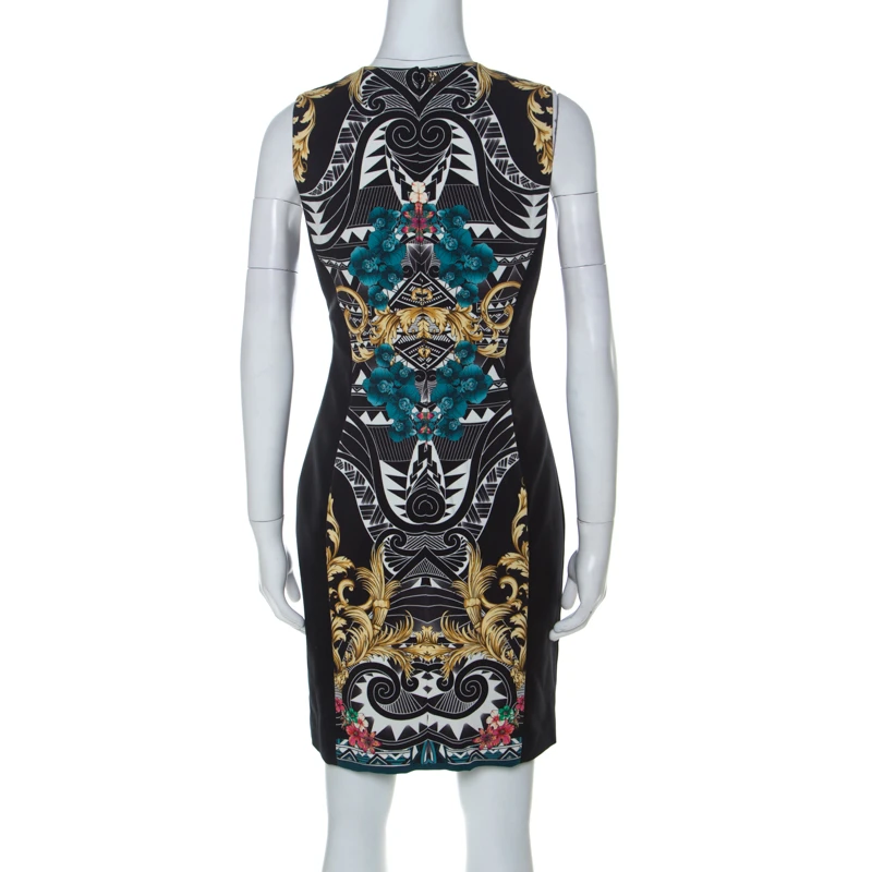 Versace brings you this fabulous sheath dress that has been designed with lovely details like colourful prints, a round neckline and a fitted shape. Team it with a pair of black sandals or pumps to look your best.