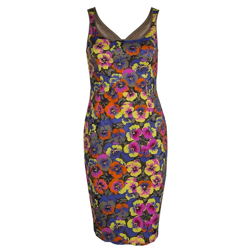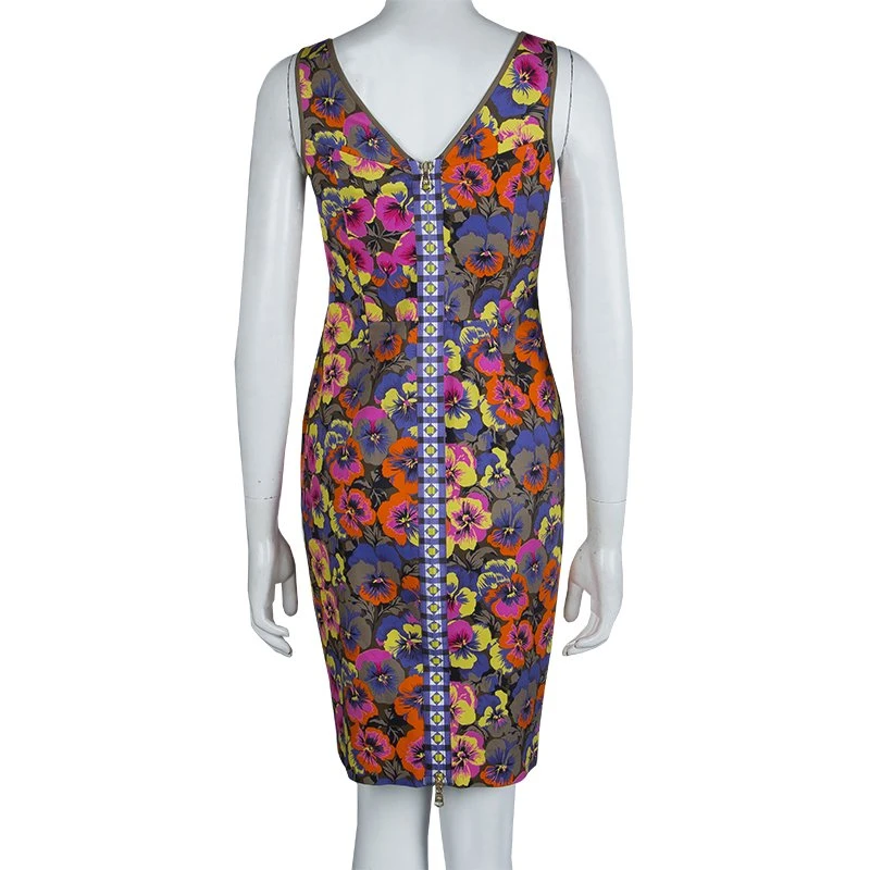 From the fashion collection of Versace, this brilliant dress comes crafted in cotton and elastane. It features a multicolored floral print and a round neckline. The dress features a rear zipper fastening. Wear this with a pair of espadrilles for a catchy summer style statement.