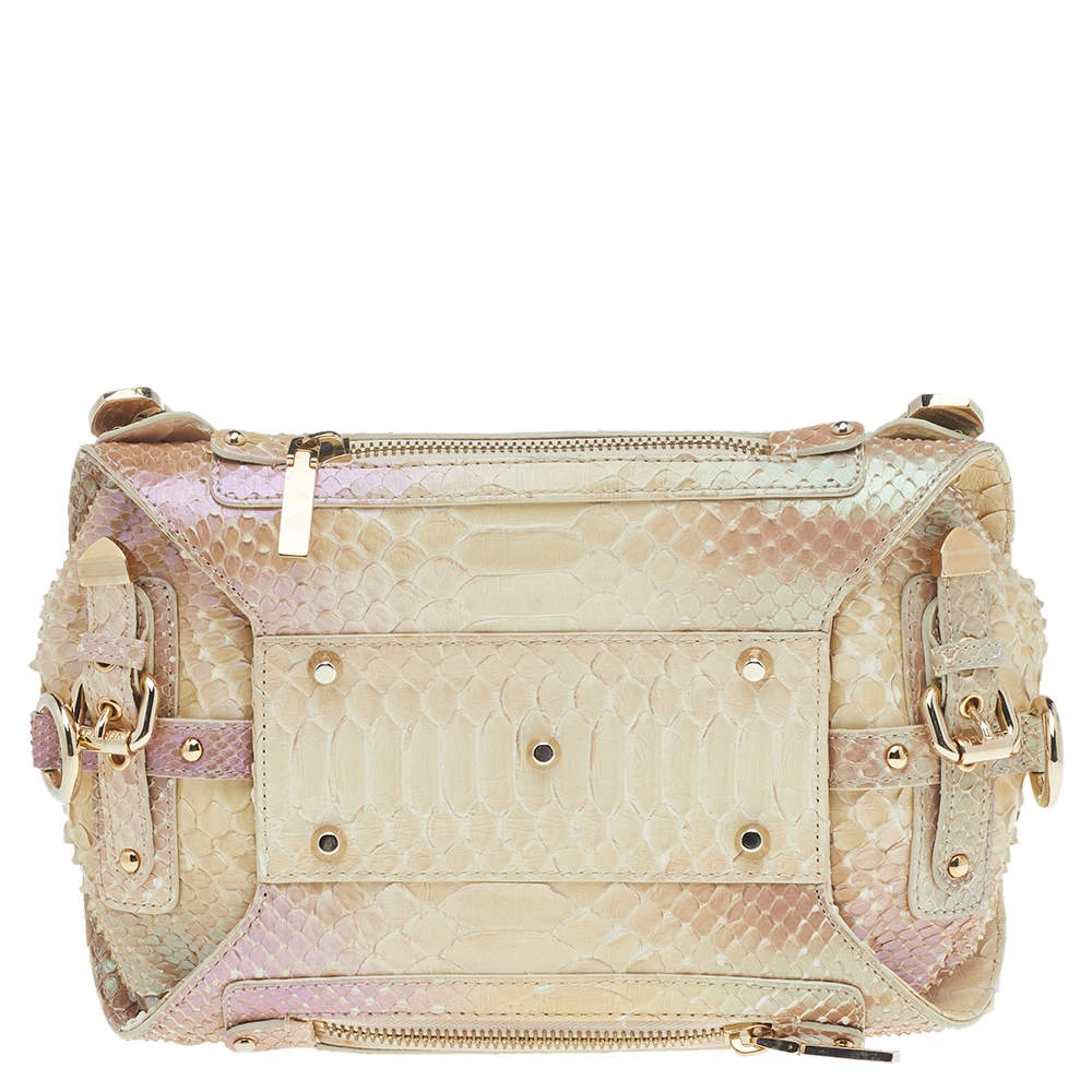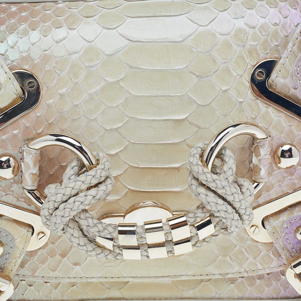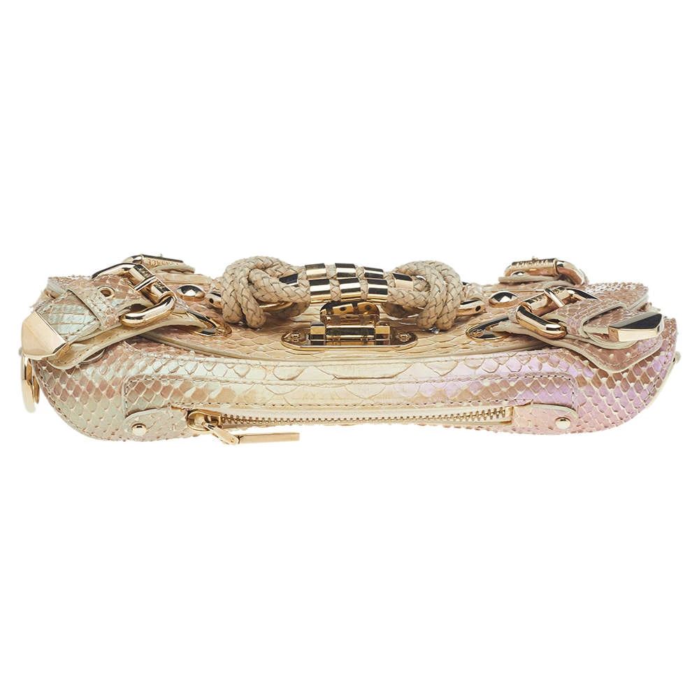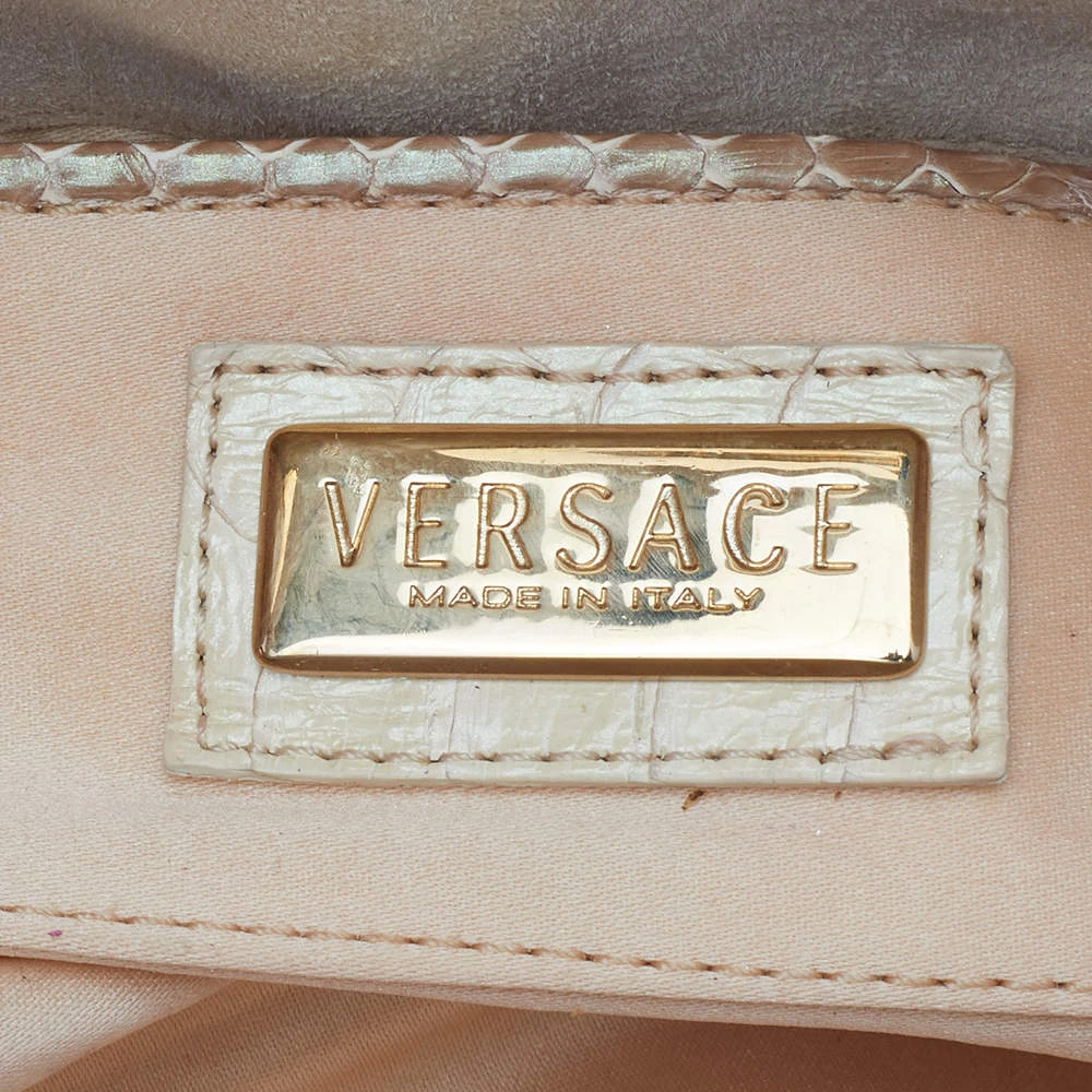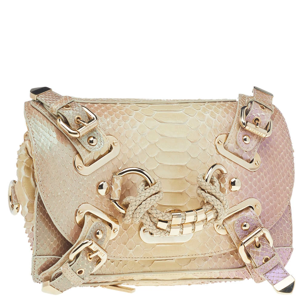 Designed beautifully, this Canyon bag from Versace will be a special addition to any closet. It is crafted from glazed python leather and is added with buckled straps and hardware on the exterior. The bag opens to a well-lined interior.
