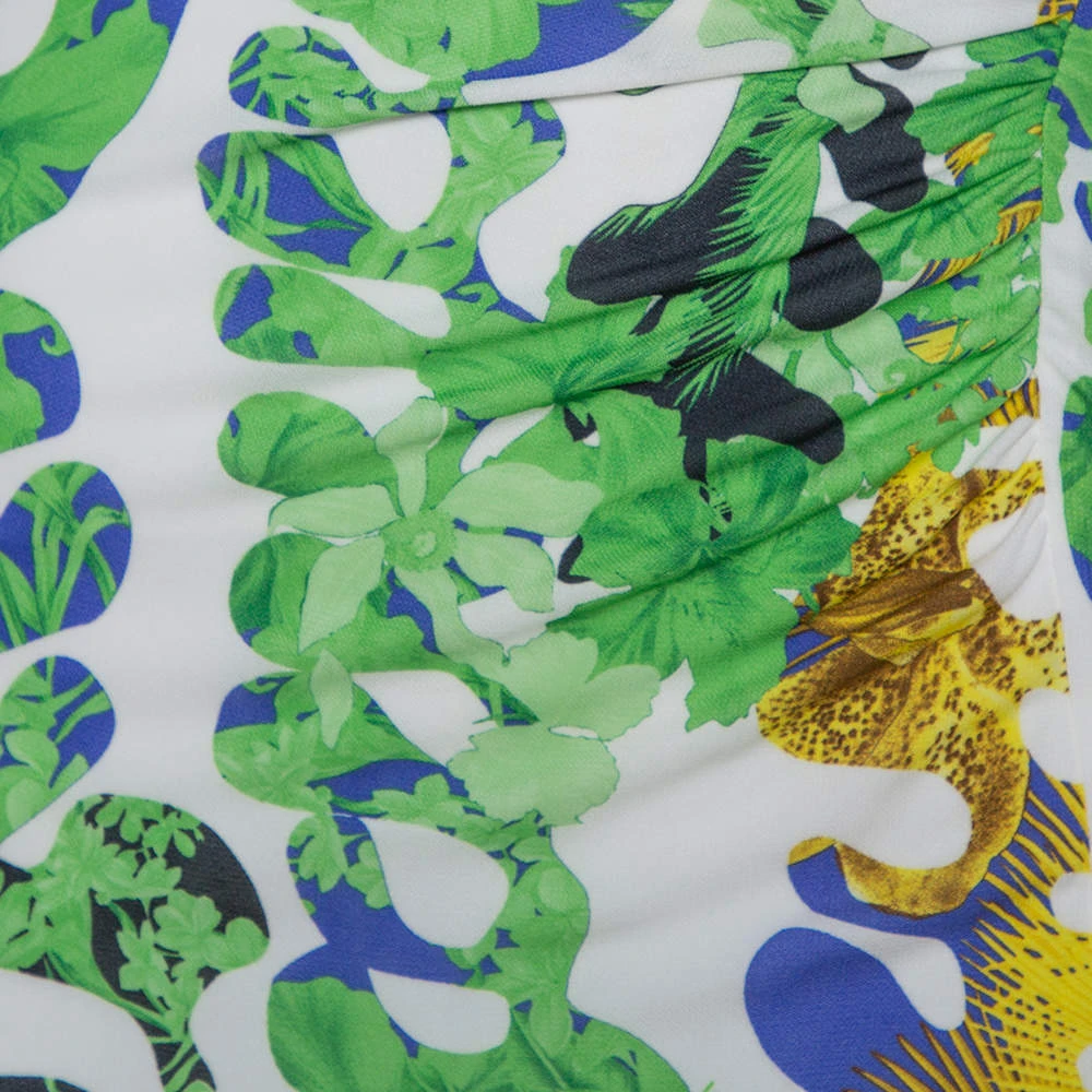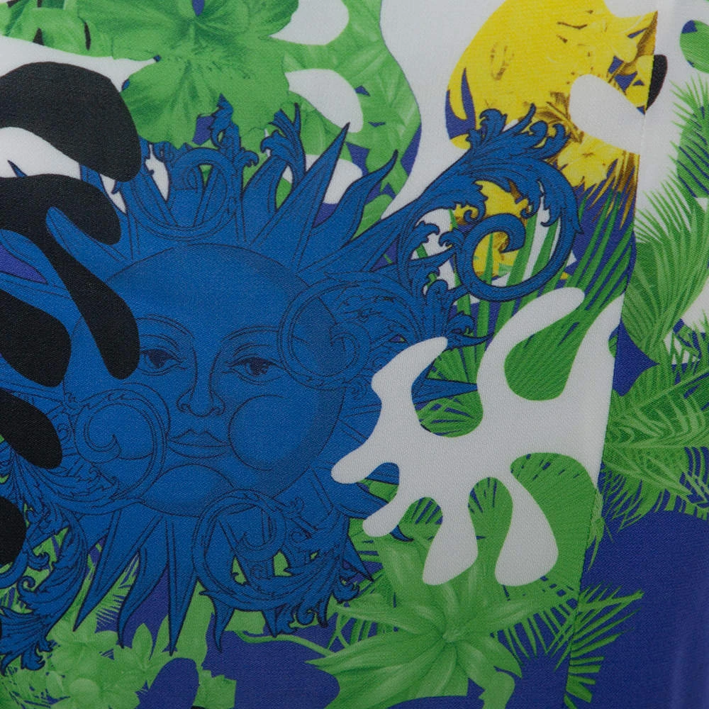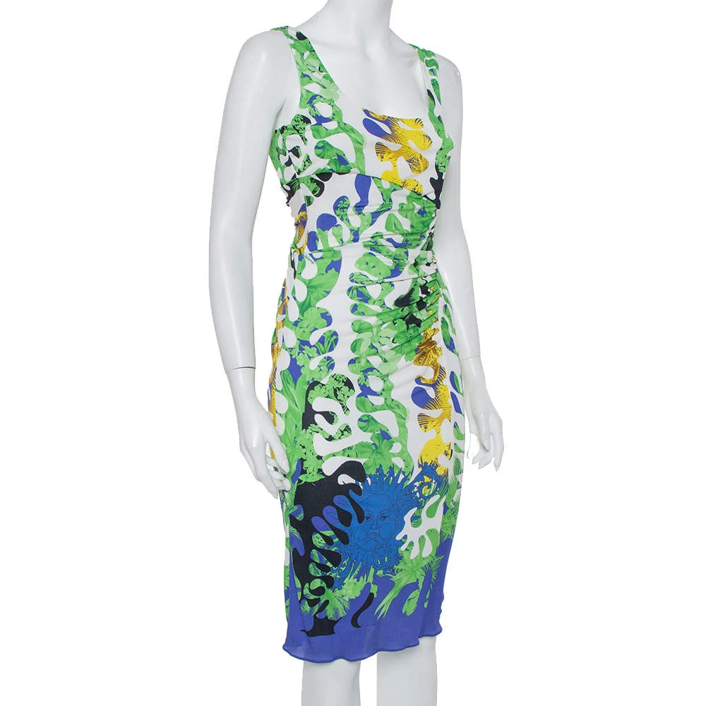 A melange of sophistication and style, this dress from Versace is perfect for a feminine look. Crafted with quality knit fabric, the outfit is designed in a sleeveless silhouette and flaunts multicolored hues. Graced with a comfortable midi length, team this lovely creation with high heels.