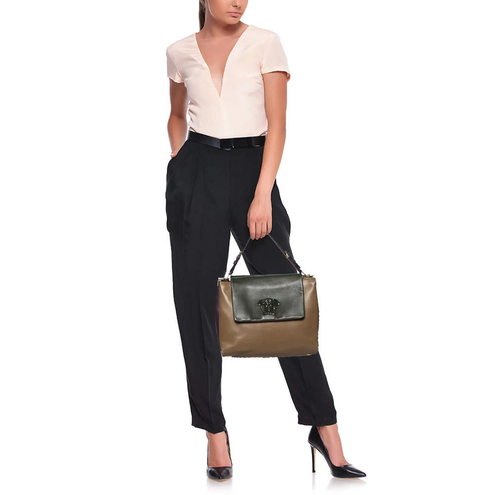 A structured and compact bag can assist you with many outings and be styled with most attires. This bag from Versace is an example of the label’s penchant for creating staple pieces. It is crafted from multicolored leather, with a Medusa motif attached to the flap. The bag is finished with a top handle, gold-tone hardware, and a satin-lined interior.