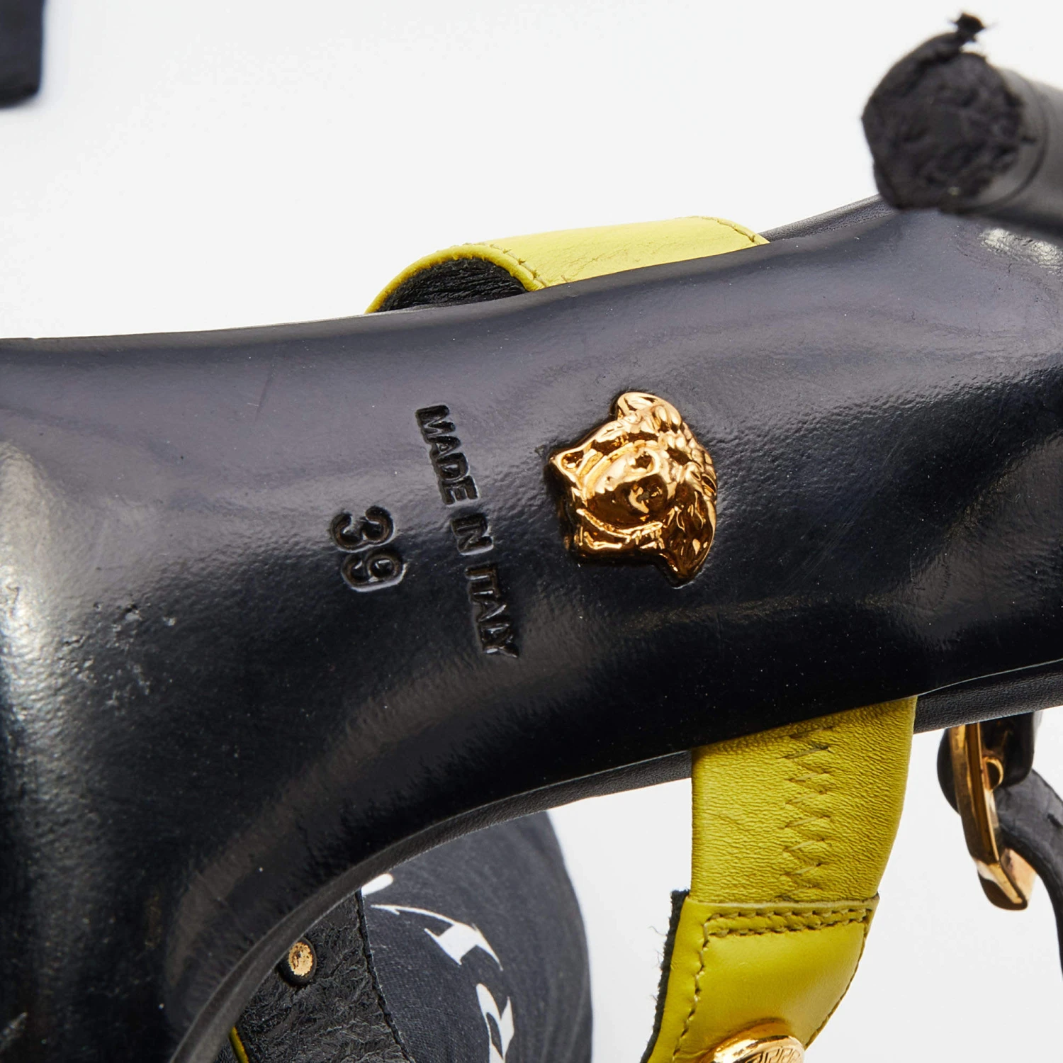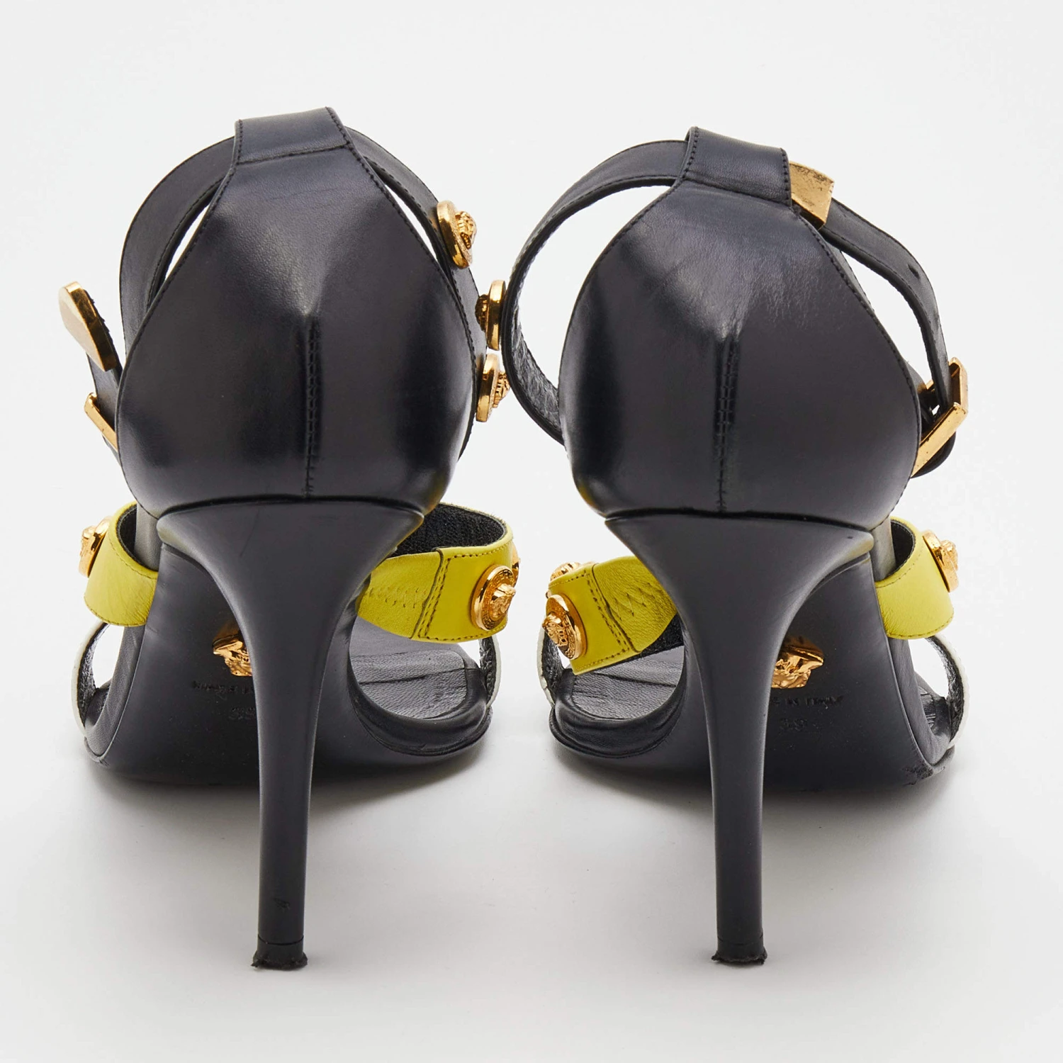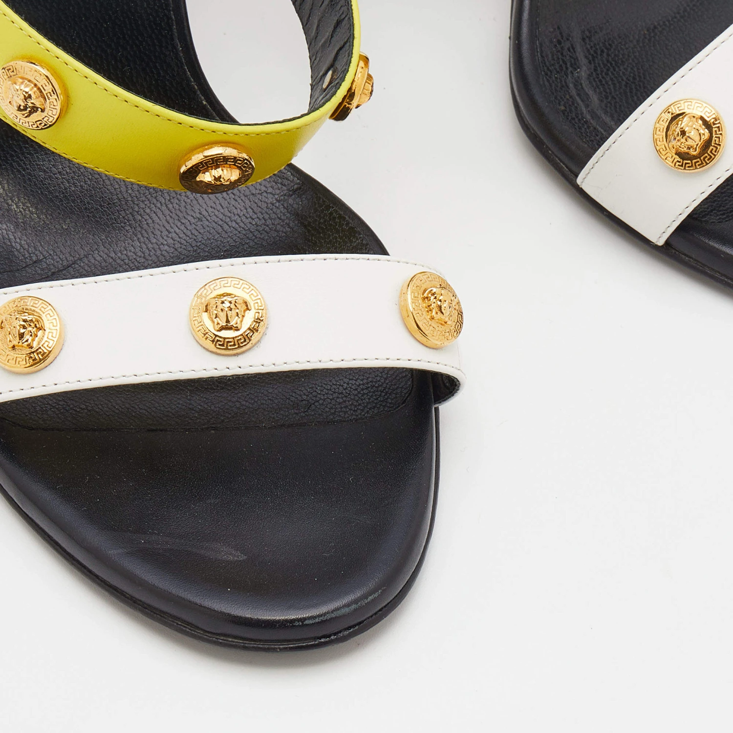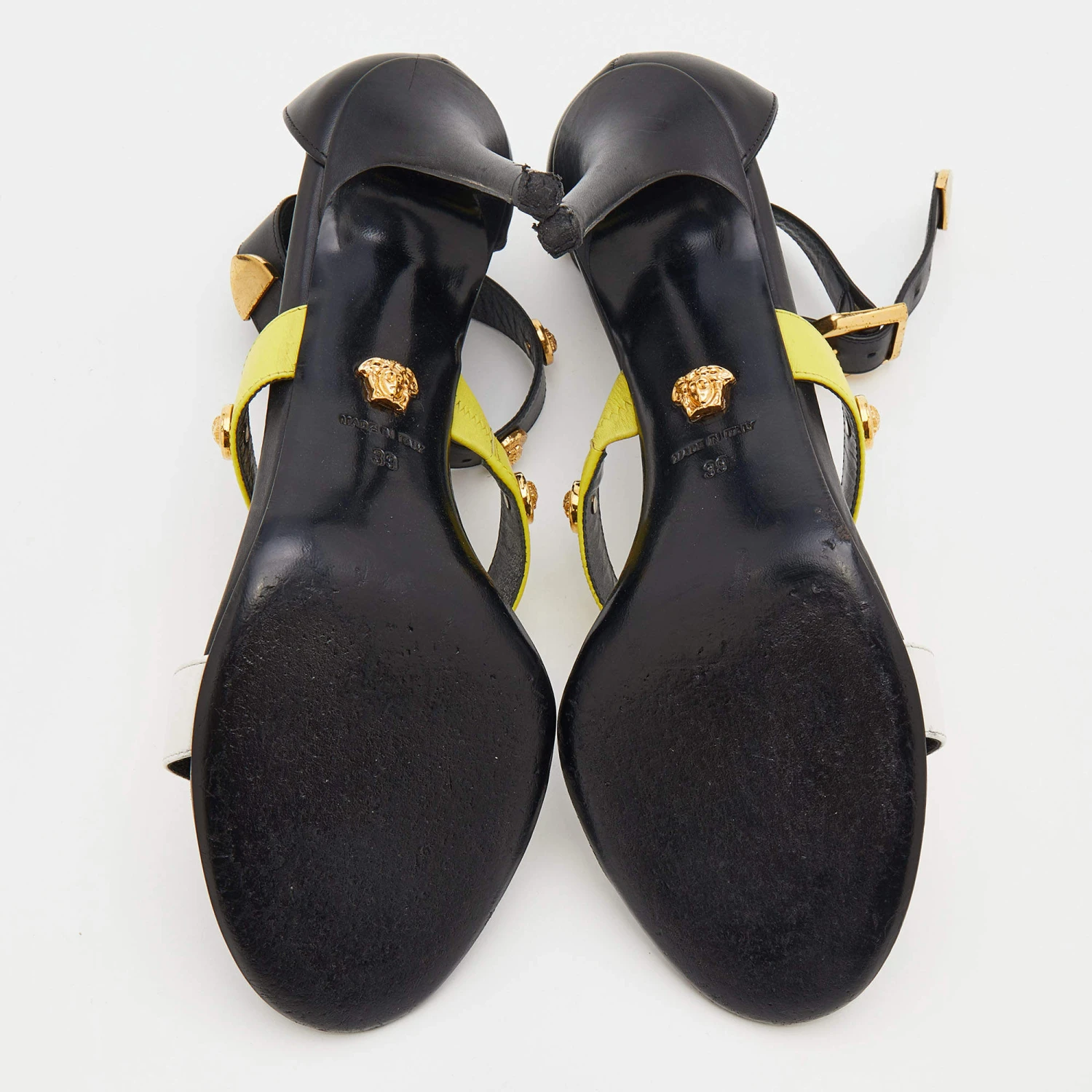 Versace brings to your closet these exquisite ankle strap sandals for those special occasions. Made using multicolored leather, they come in a strappy design showing Medusa-detailed studs and have 10 cm heels. Style them with short dresses for an elevated appeal.