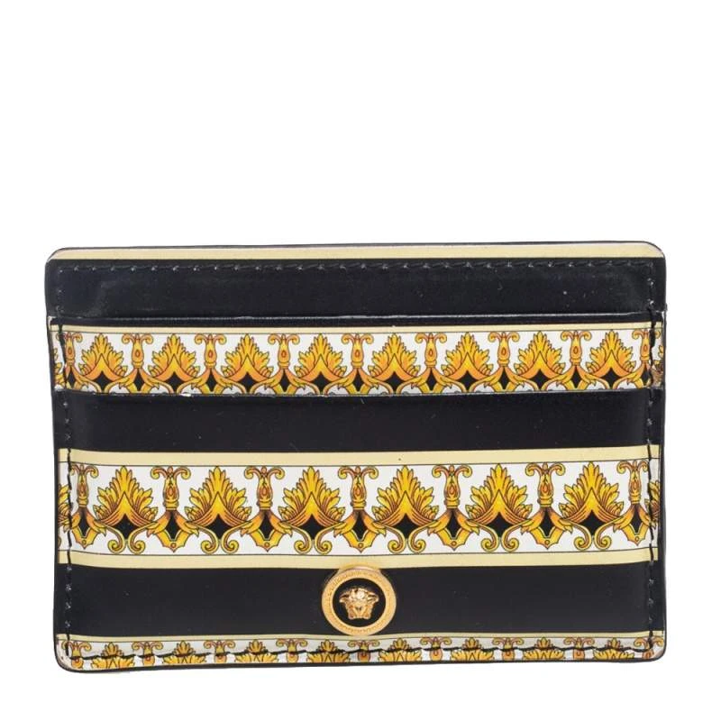 With its meticulous crafting and iconic design, this card case from Versace is a beautifully-made accessory you need to own! It features multicolored printed leather on the exterior and has a gold-toned Medusa motif embellishing the front. It has several slip pockets for storage.