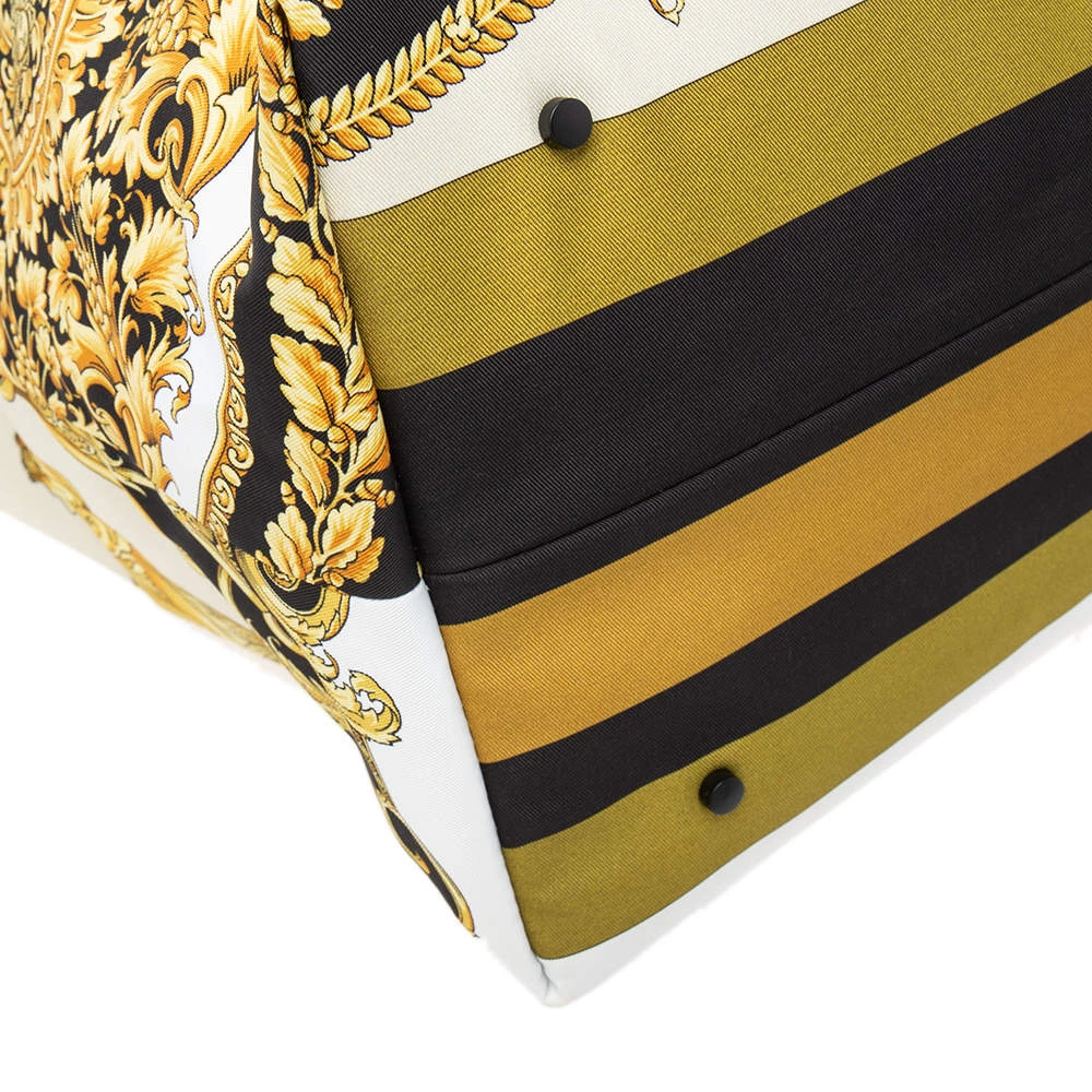 The excellently crafted handbag by Versace will make you stand apart from the crowd. This multi-colored bag has been crafted from printed nylon. It is styled with dual handles, zip closure, nylon-lined interior, gold-tone hardware, and brand logo detailing. It is stylish and functional for everyday use.