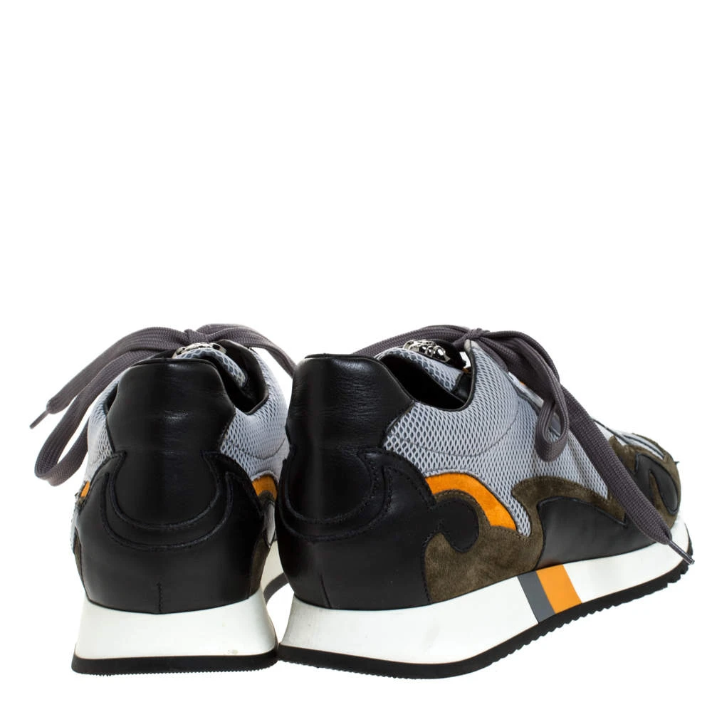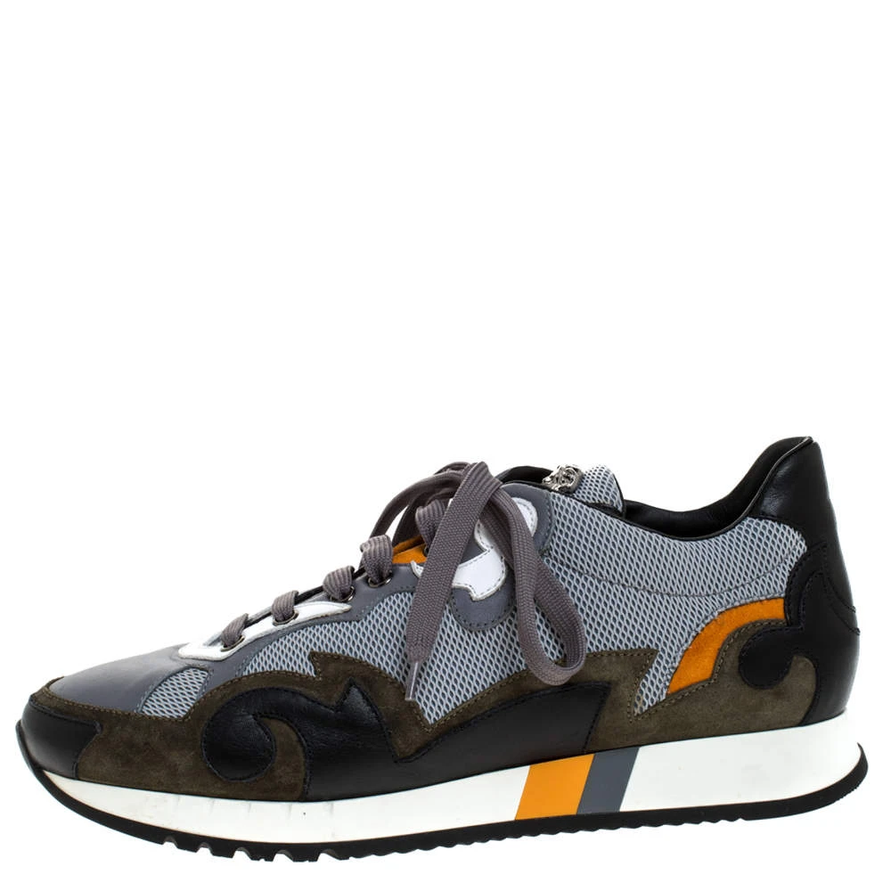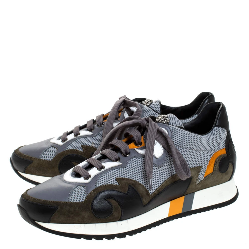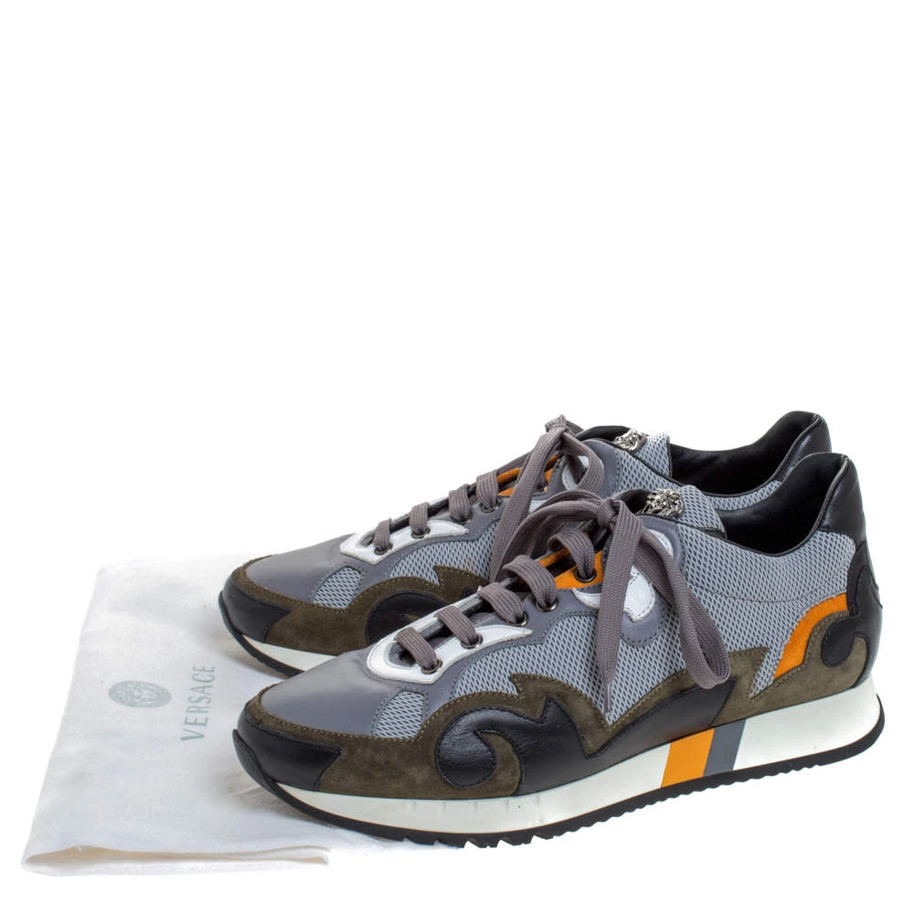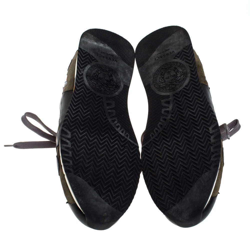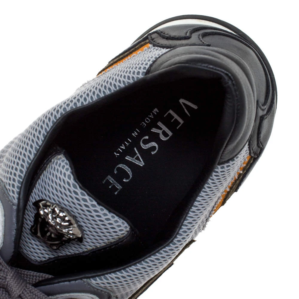 These trendy and chic sneakers from Versace will amp up your style. These mesh, leather and suede sneakers are ideal to lend a dramatic twist to your outfit. They are styled with round toes, lace-ups, signature Medusa logo on the tongues and silver-tone hardware. They are finished with rubber soles.