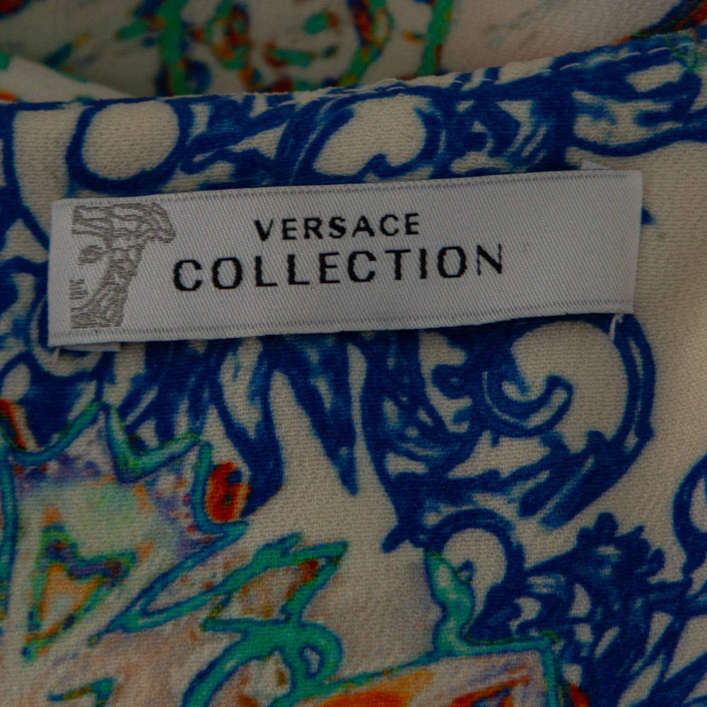 Flaunt your exceptional taste in fashion as you step out wearing this dress from the House of Versace. Designed using multicolored printed crepe fabric, this dress is accentuated with a sleeveless style and a midi length. It is equipped with a zip-type closure. Make an impressive style statement by wearing this!