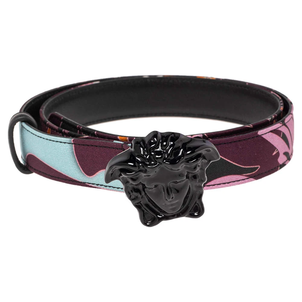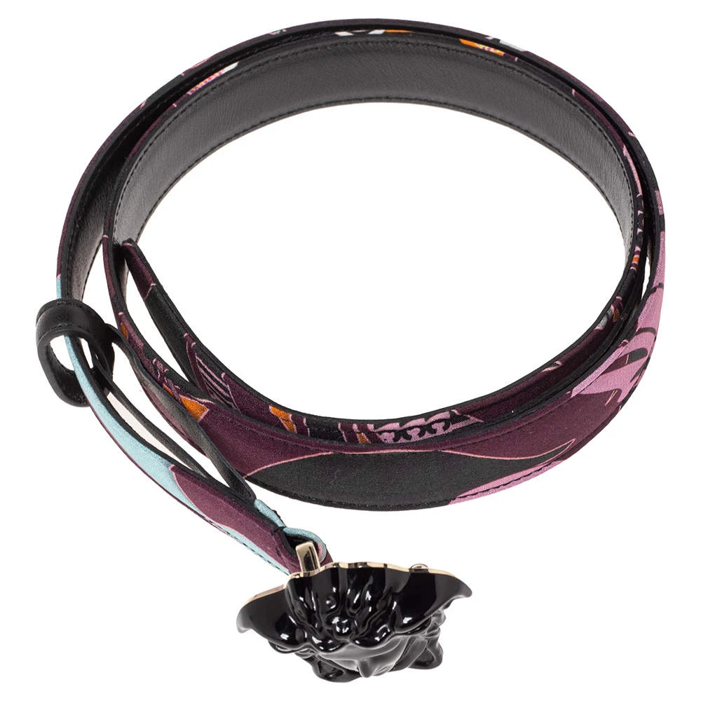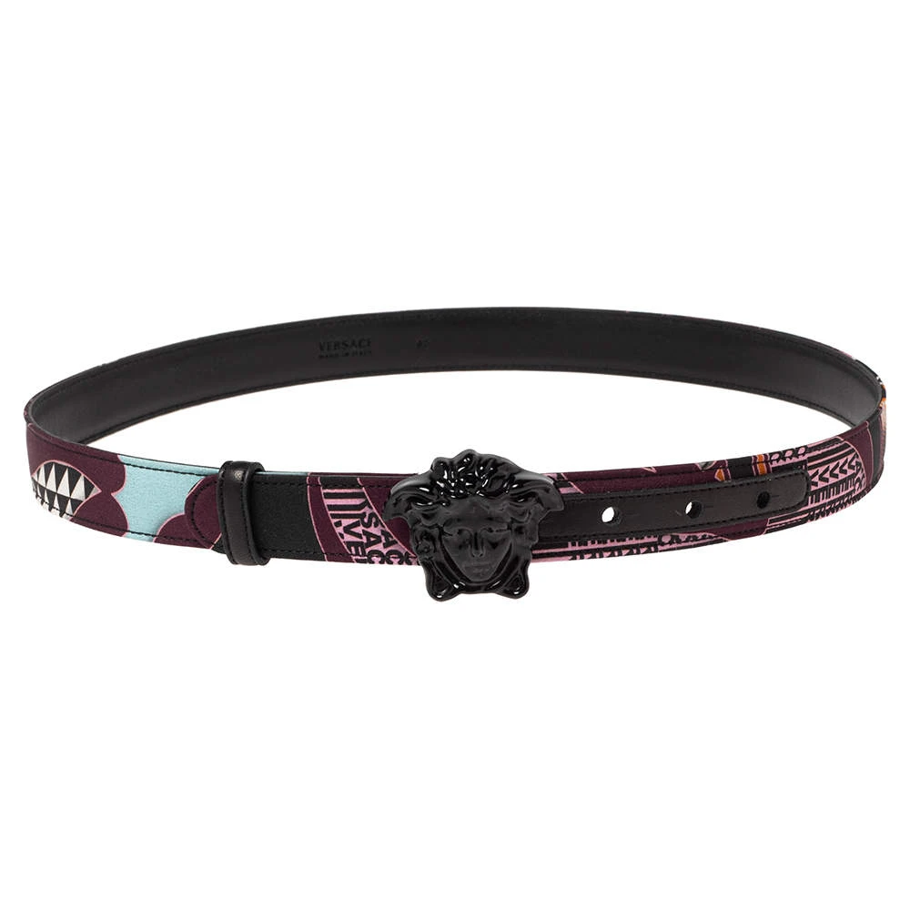 Statement belts are wardrobe essentials and we’ve got our eyes on this fabulous one from Versace! It has been crafted from multicolored printed nylon, is trimmed with leather, and glamorously styled with the signature Medusa buckle. It is equipped with a single loop that helps in seamlessly fastening the belt. You’ll love owning this creation!