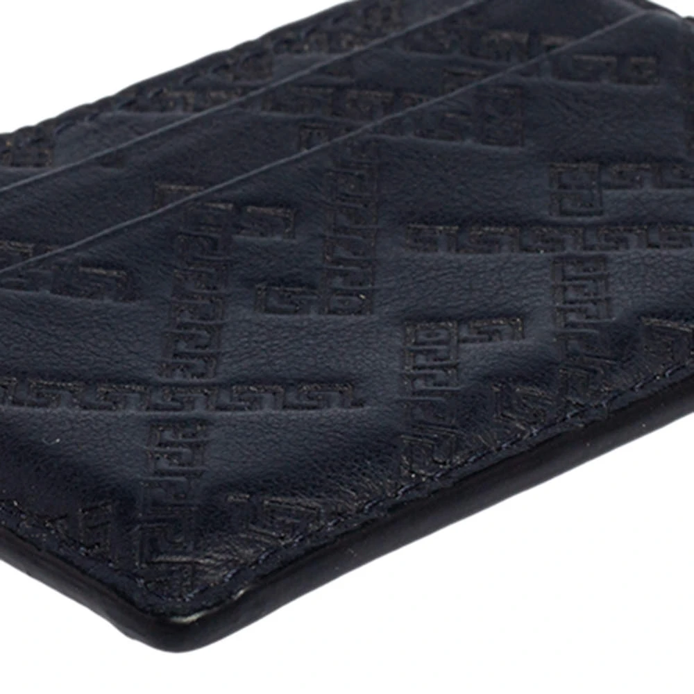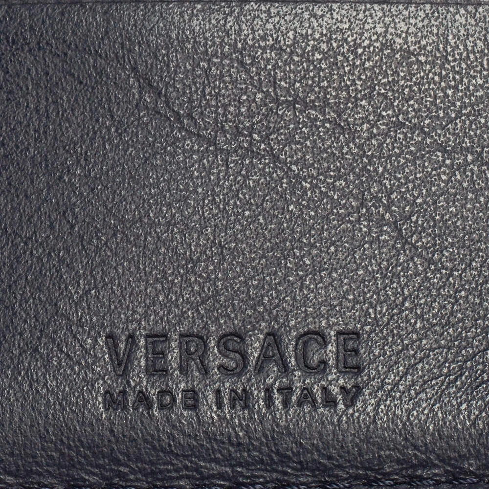 Durable and long-lasting, this cardholder is crafted from embossed leather. Showcasing an exclusive design from Versace, this creation features the signature Greek key detailing and comes with compact insides. It is sure to be an amazing buy!
