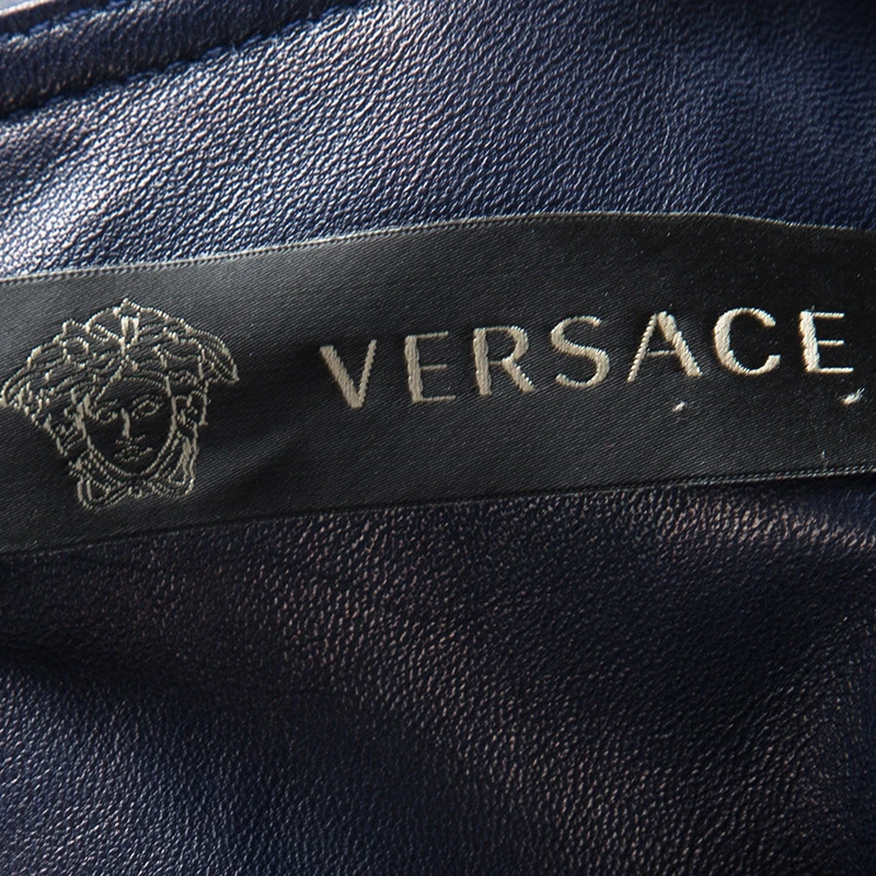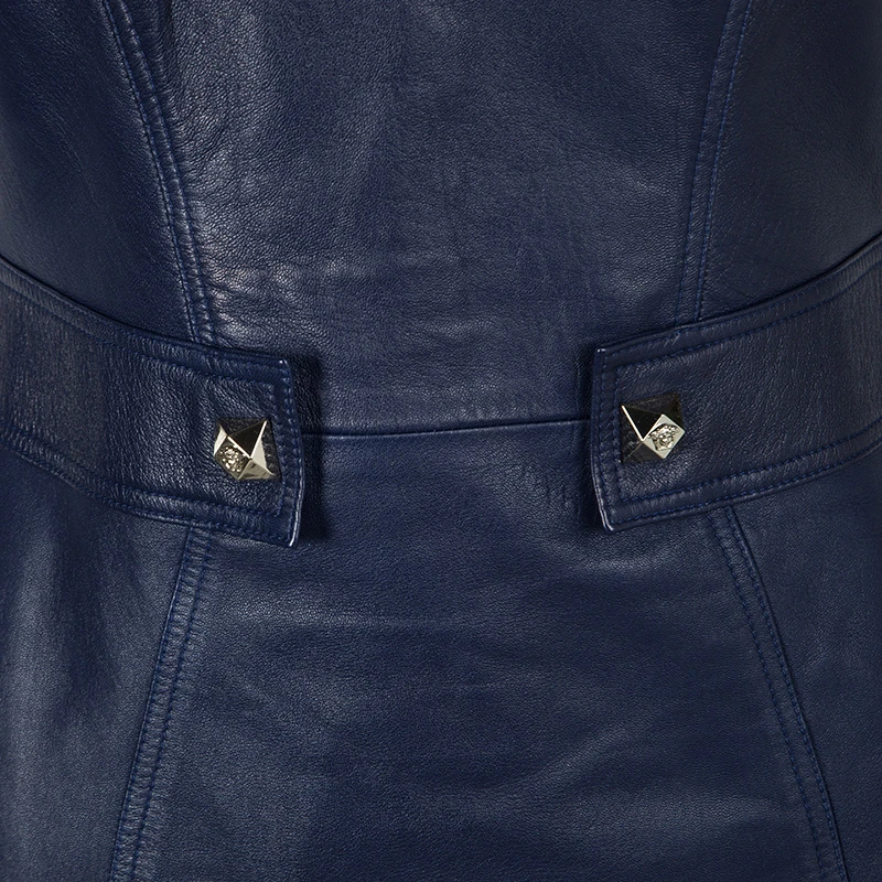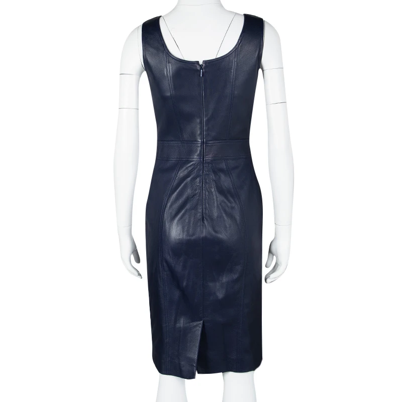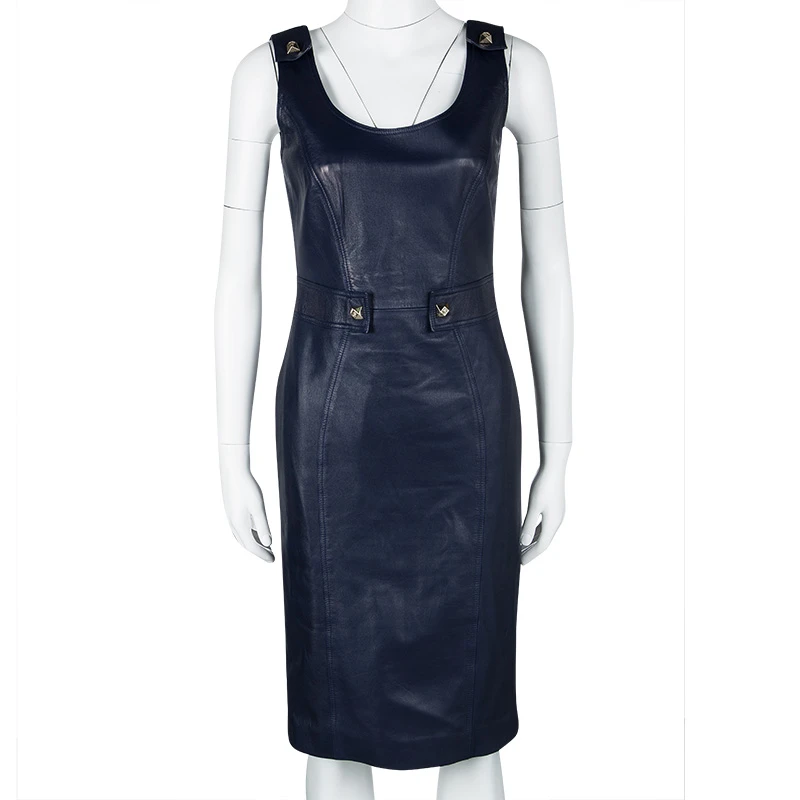 This navy blue dress from Versace has been made from leather and styled to glorify the fashionista in you. The dress features a scoop neck, a back zipper, and stud detailing. The sleeveless dress can be assembled with a pair of spike pumps from Christian Louboutin.