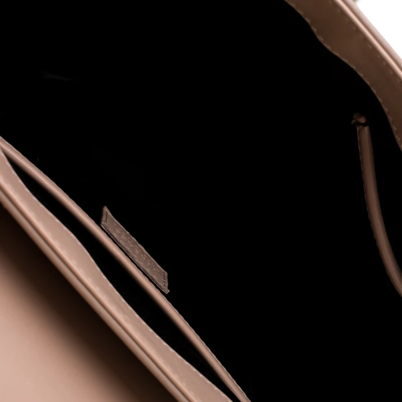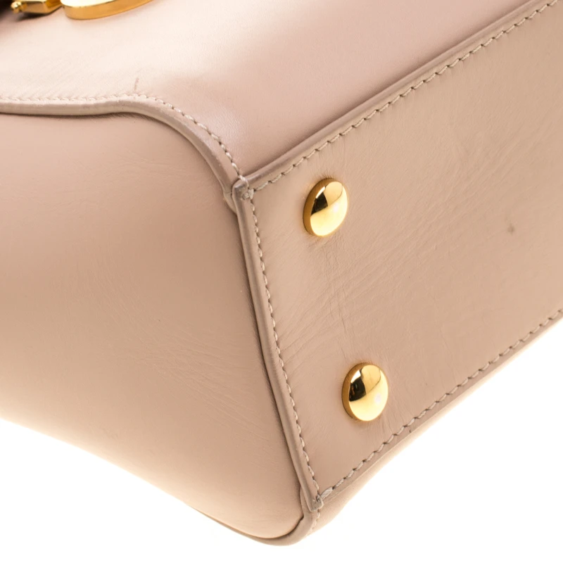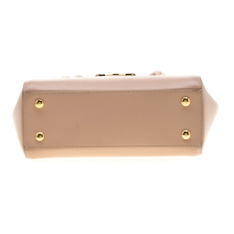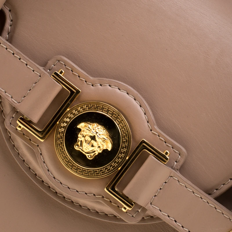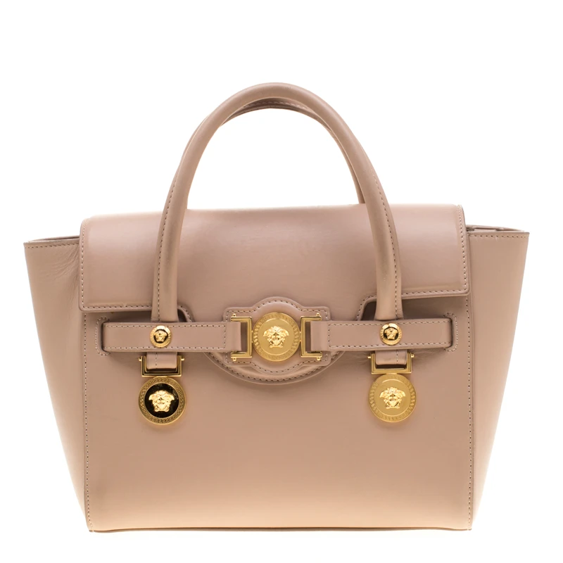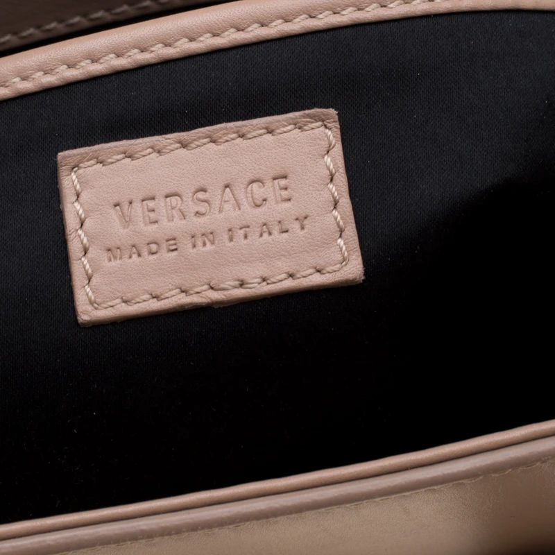 Sophisticated and luxe, this bag from Versace definitely needs to be on your wishlist. The bag is crafted from leather in a lovely nude shade and it features a structured silhouette. It flaunts dual handles, a removable shoulder strap and the famous Medusa logo on the front. The spacious fabric interior houses slip pockets.