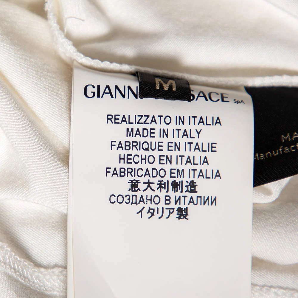 Get the style you desire as well as the comfort you need with this long-sleeve T-shirt from Versace. Made from quality materials, the off-white T-shirt is added with a simple neckline and embellishments on the front.