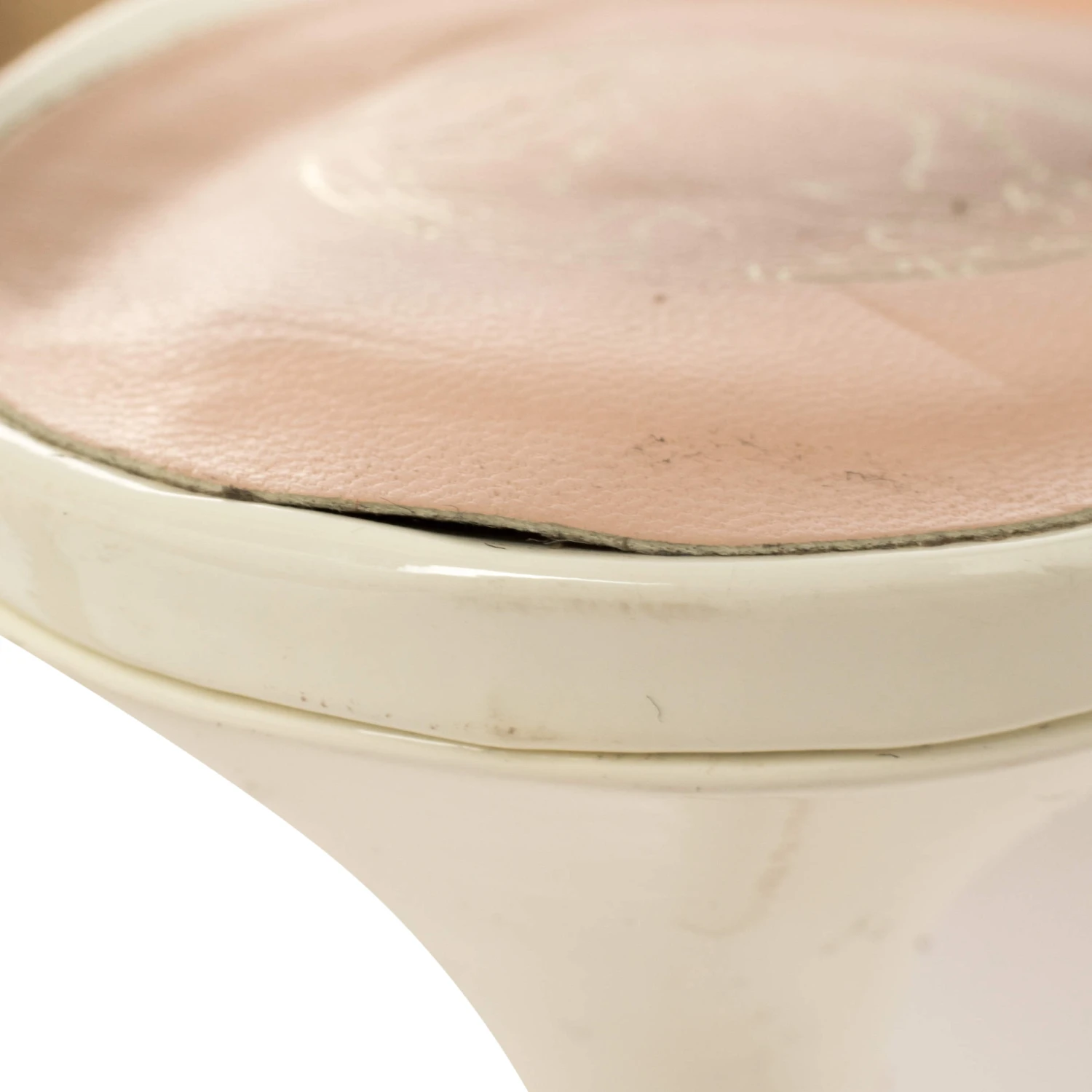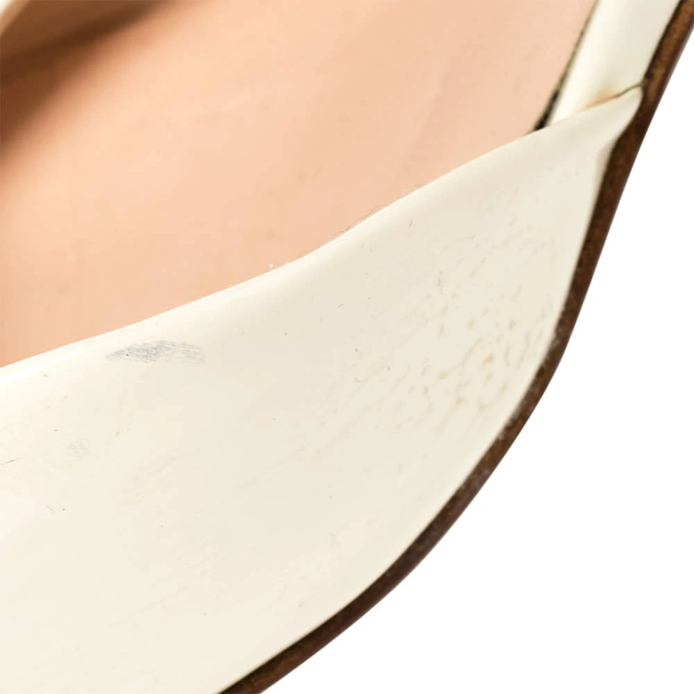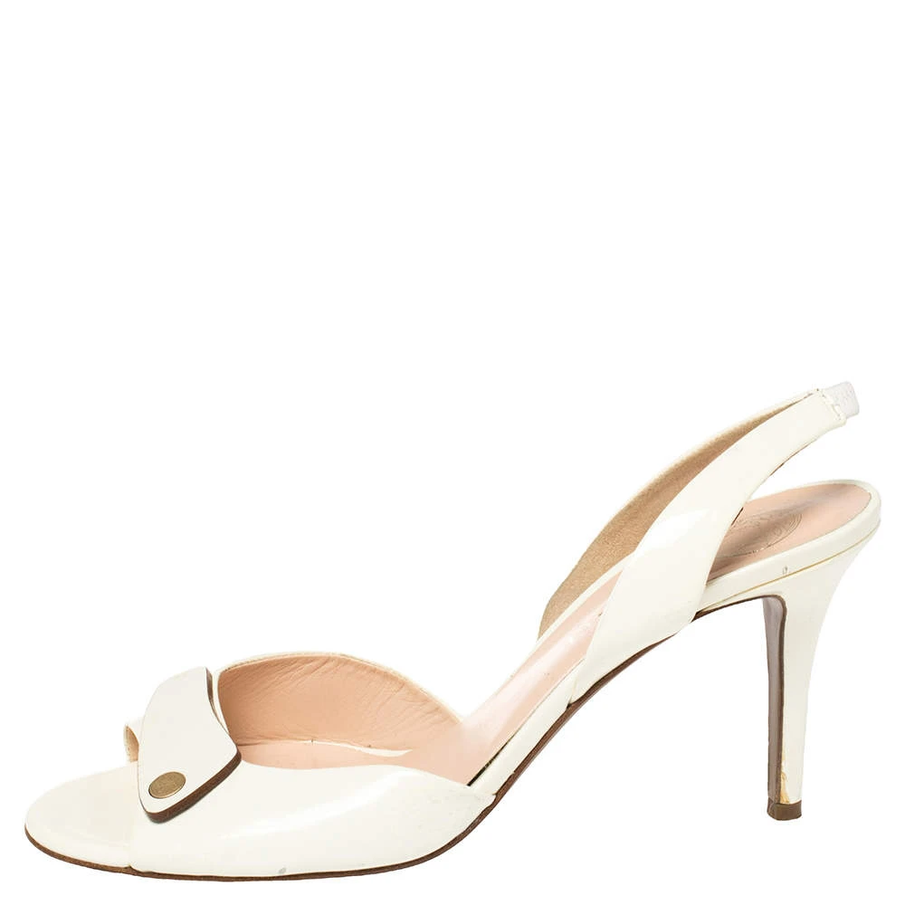 Get ready to dance all night long in these fabulous sandals from Versace! The off-white sandals are crafted from patent leather and feature an open toe silhouette. They have been exquisitely styled with slingbacks, comfortable leather-lined insoles, and elevated on 8 cm heels.