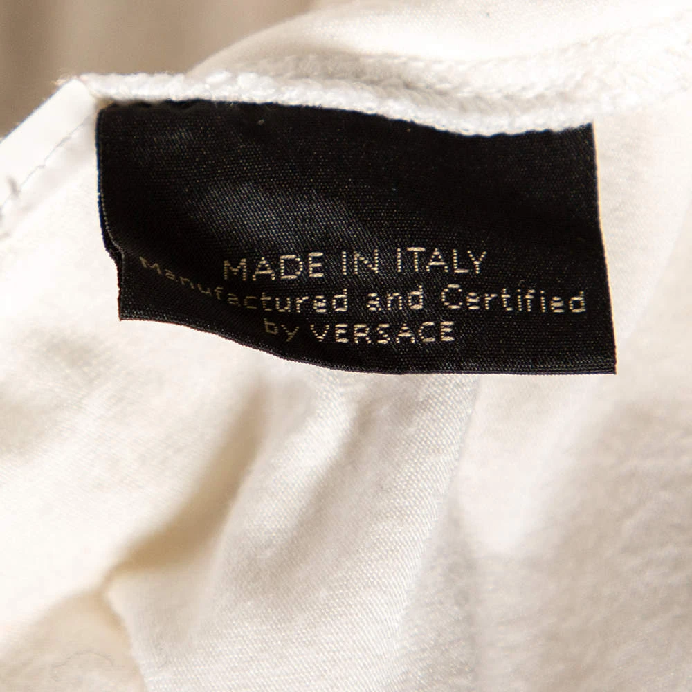 Update your casual collection by adding this T-shirt from Versace. It is made from off-white stretch knit fabric and features short sleeves and a Medusa embellishment on the front. Pair this T-shirt with jeans and look cool!