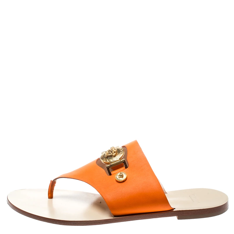 These premium quality leather flats will lend an elegant and poised look. Keep it light and simple with these uber comfortable leather sole thong sandals. The house of Versace brings you this impressive pair that complements your casual outfits. Keep your style as comfortable as it can be with this finely designed orange footwear.