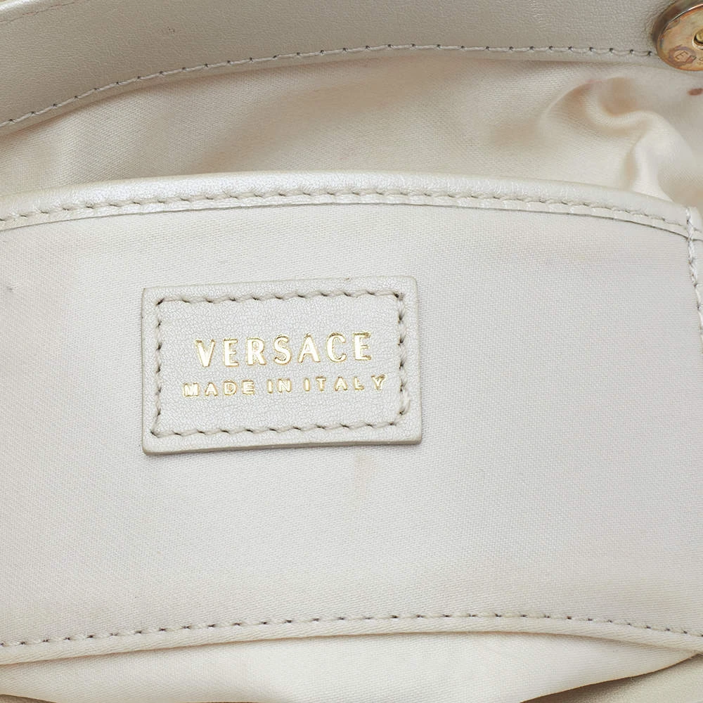 Versace’s clutch crafted using quilted leather has a compact size and a soft-hued exterior. It comes fitted with snap button closure, a satin interior, and is decorated with the Medusa logo. Stow all your evening essentials in this sleek clutch.