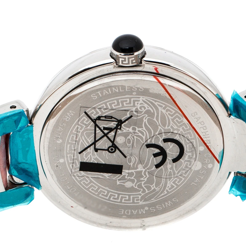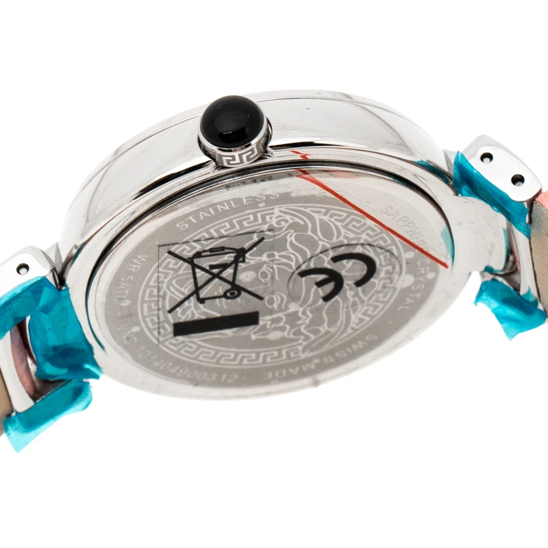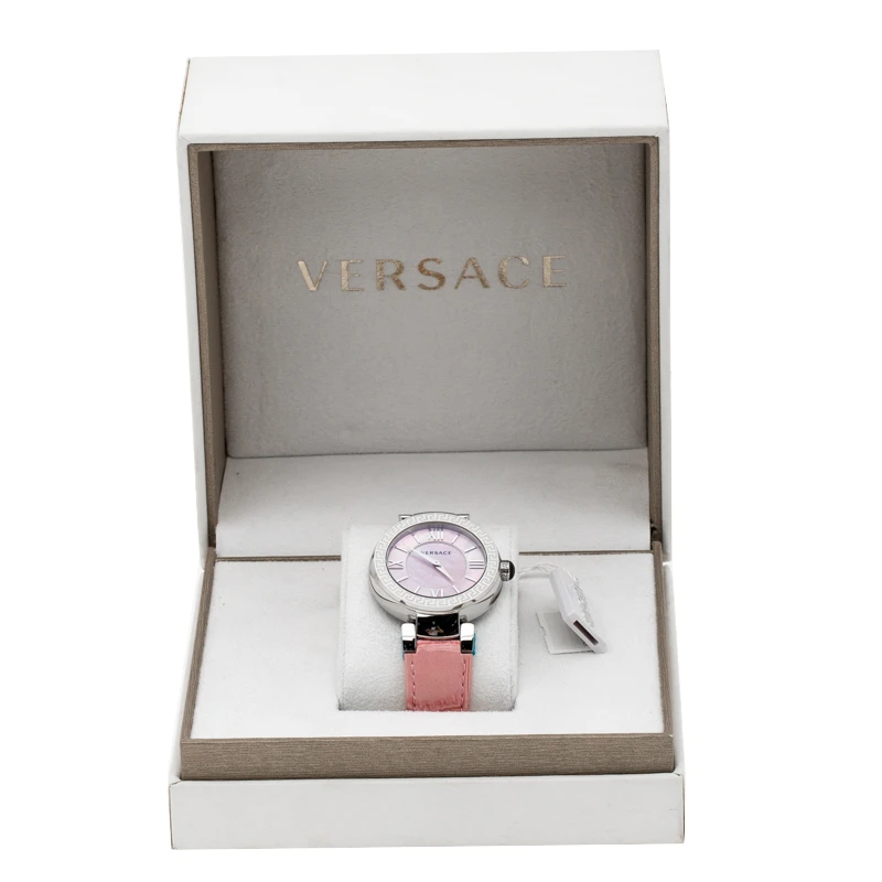 Versace offers designs portraying grand style with everything eye-catching and this Leda VNC from the label demonstrates just that. The watch is made of stainless steel and held by leather straps. It is graced with a stylish bezel detailed with signature Greek key symbols and fitted within is a Mother of Pearl dial with Roman numeral hour markers. This quartz watch has water resistance up to 50 meters and will look gorgeous on your wrist.