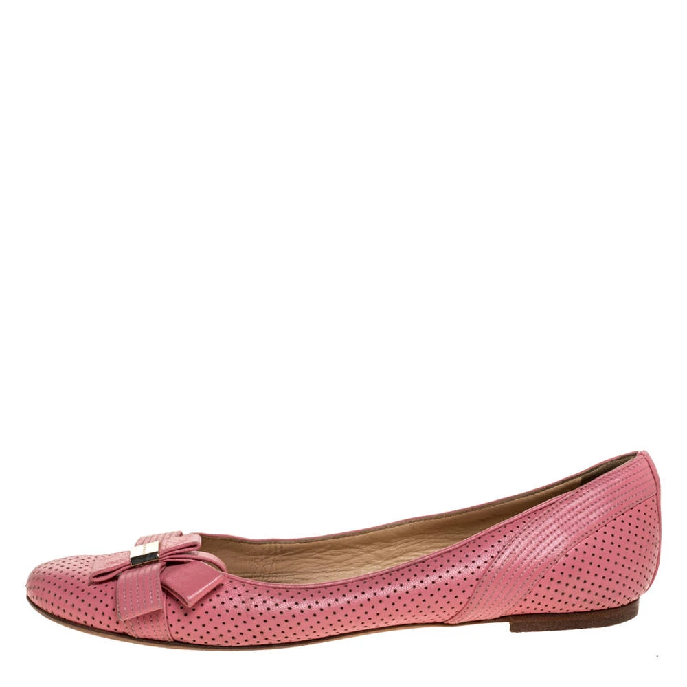 These ballet flats from Versace are sure to lend a classy and stately look to everything that you wear. They are crafted from pink perforated leather and feature bow accent on the vamps along with comfortable leather-lined insoles. They are complete with sturdy outsoles.