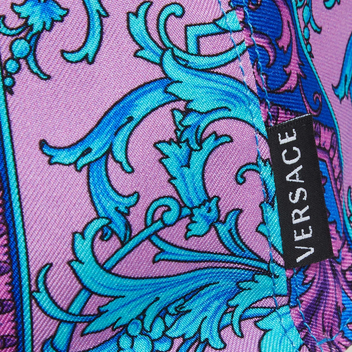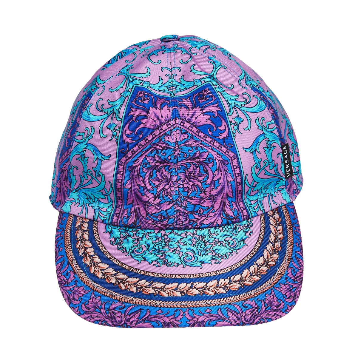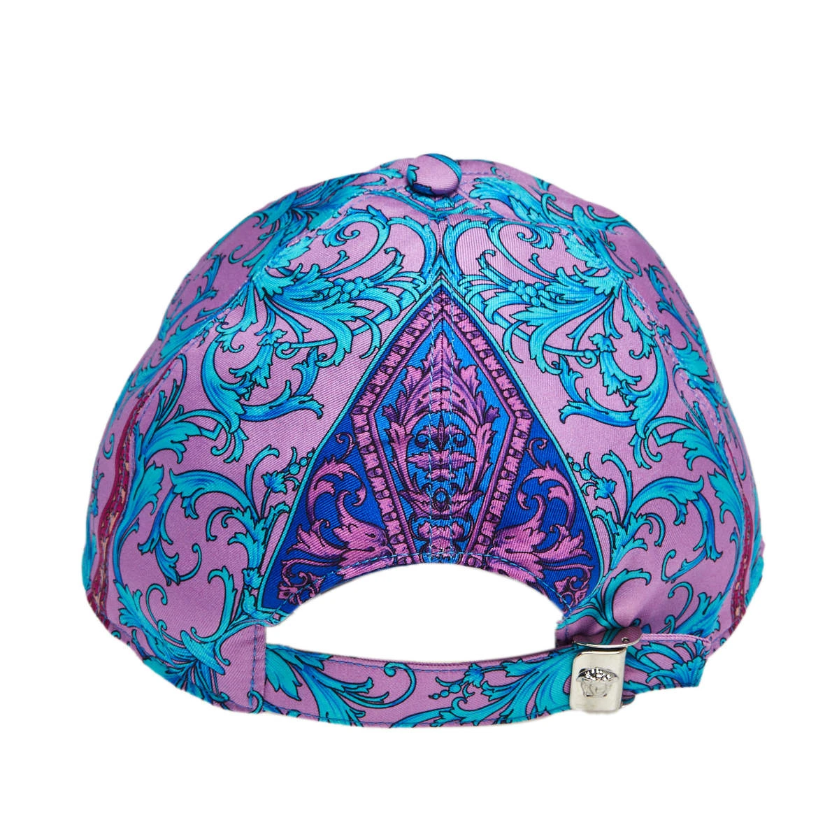 This baseball cap by Versace is crafted from purple silk and features the baroque, one of the House’s codes. Made in Italy, it has an adjustable hook-loop closure and an adjustable back.