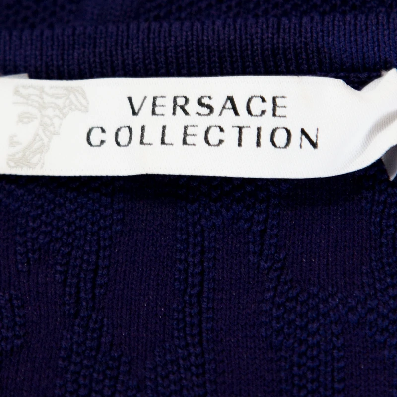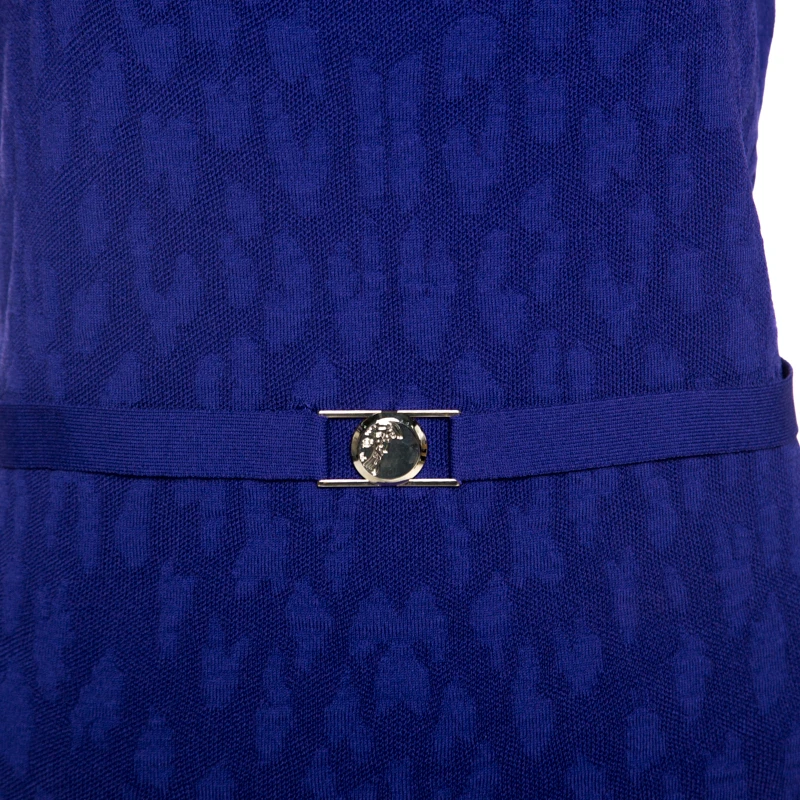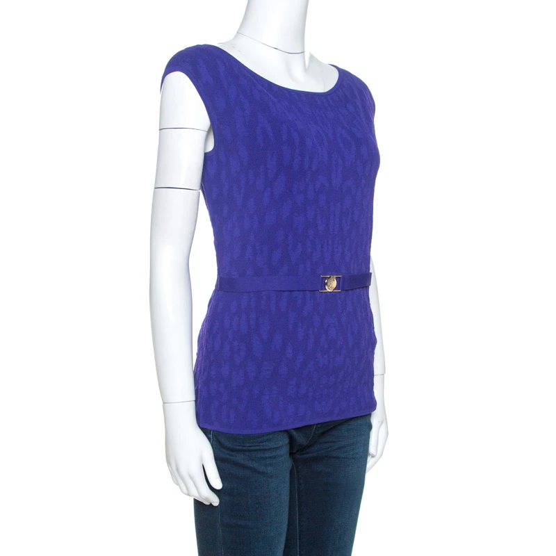Pair this top from Versace with your favourite accessories to create a classic style statement. Crafted from quality materials, this sleeveless top comes in a lovely shade of purple. It comes with a wide neck, fitted silhouette, a belt detail that sits at the waist and a jacquard pattern that adds interest.
