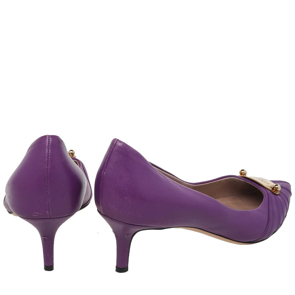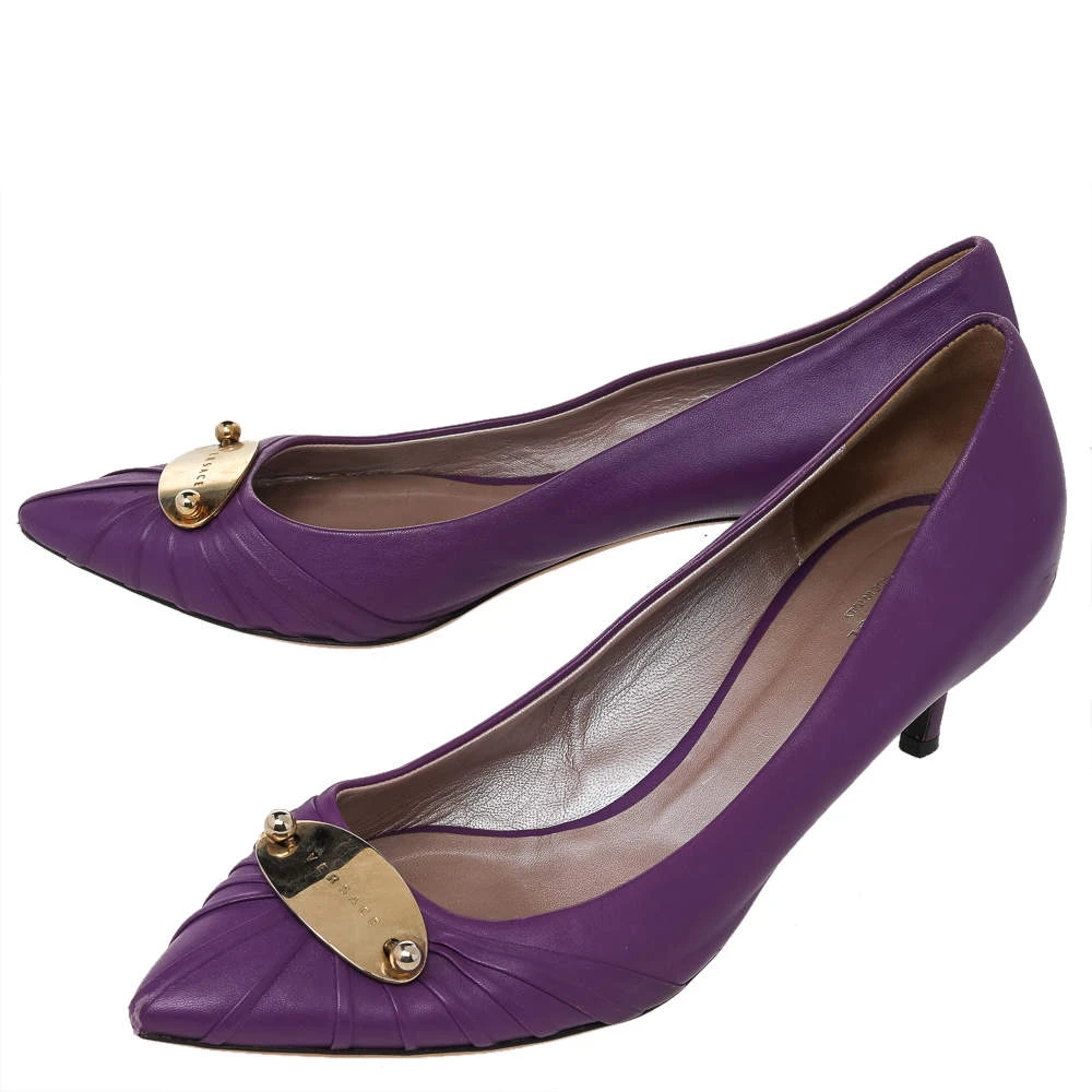 This pair of chic pumps by Versace is the standard of sophistication. It is designed from leather, with utmost precision. These pumps are supported with leather on the insides and make a fashionable and comfortable fit. This pair of purple pumps will add a classic touch to your wardrobe.