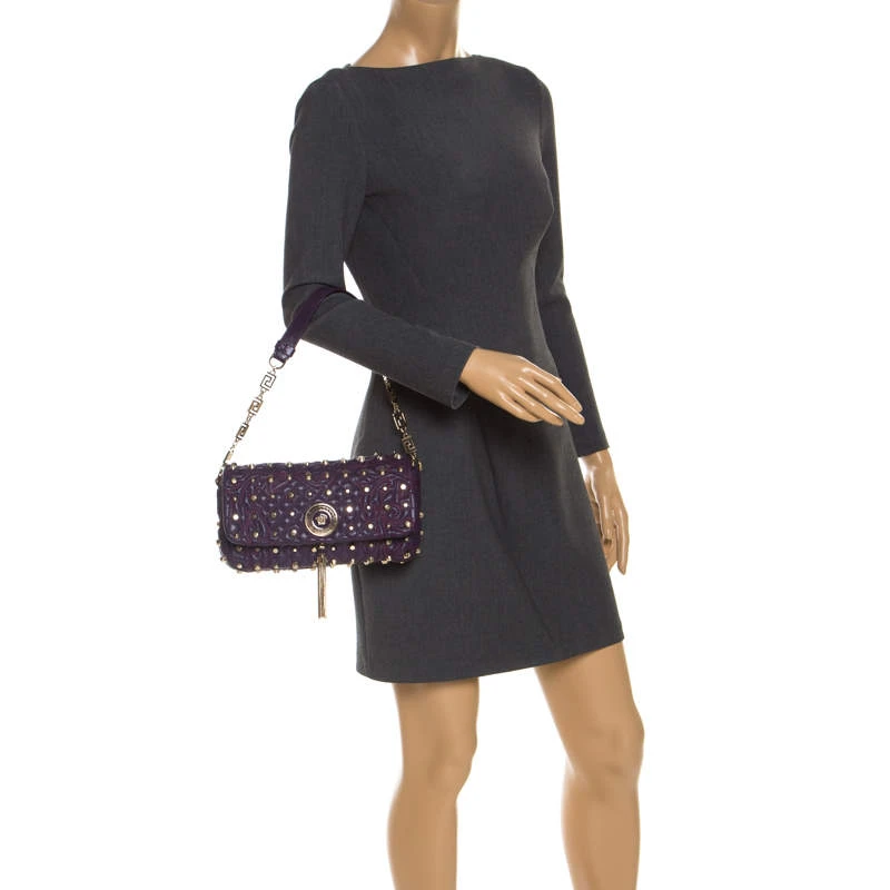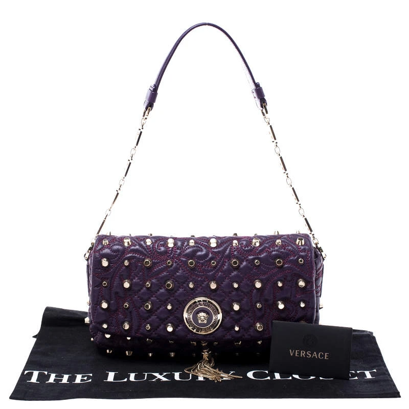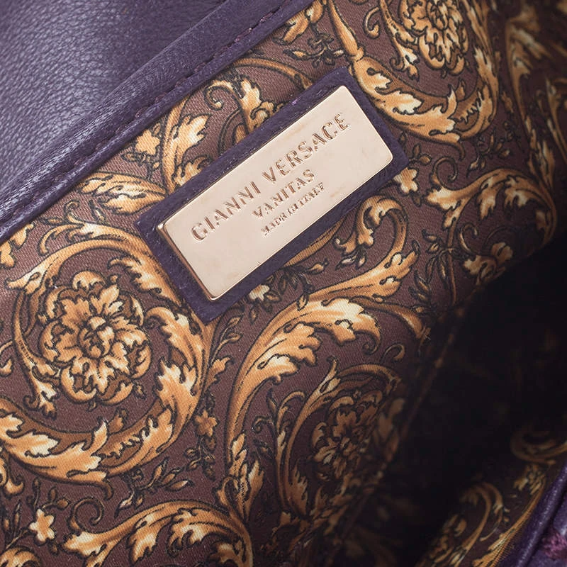 This Vanitas Medea purple bag is an absolute delight. The Versace creation features a quilted effect along with gold-tone studs and the medusa tassel logo on the front. Crafted from leather the bag features a top handle and a fabric lined interior.
