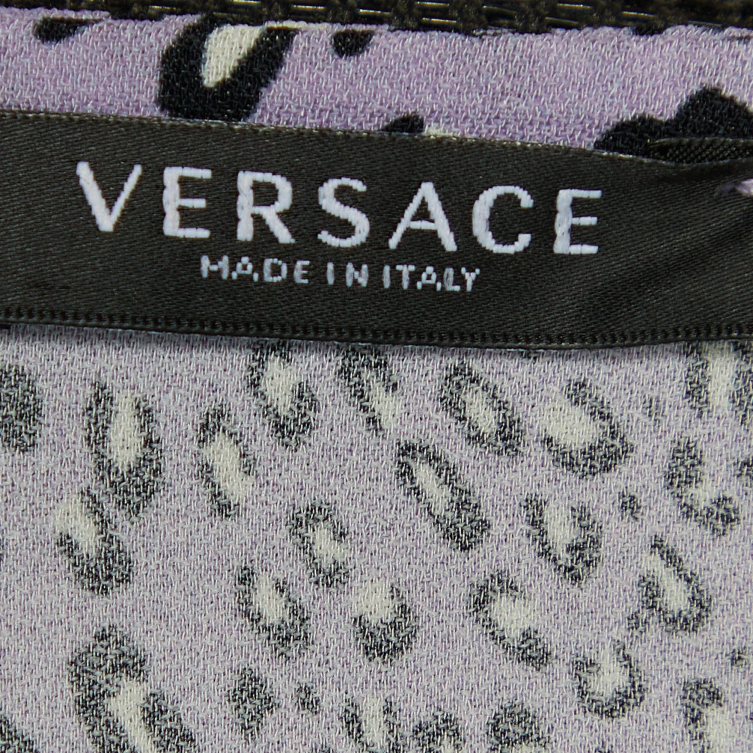 This crop top from the House of Versace is here to make you look fashionable. It is tailored using purple crepe fabric, which is enhanced with leopard prints. It showcases a cropped fit, a zipper fastening, and long sleeves. Wear this Versace top with high-waisted pants or denim for casual outings.