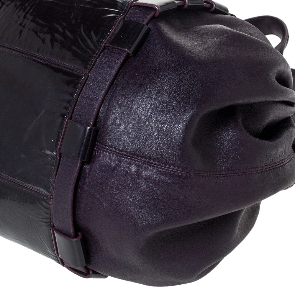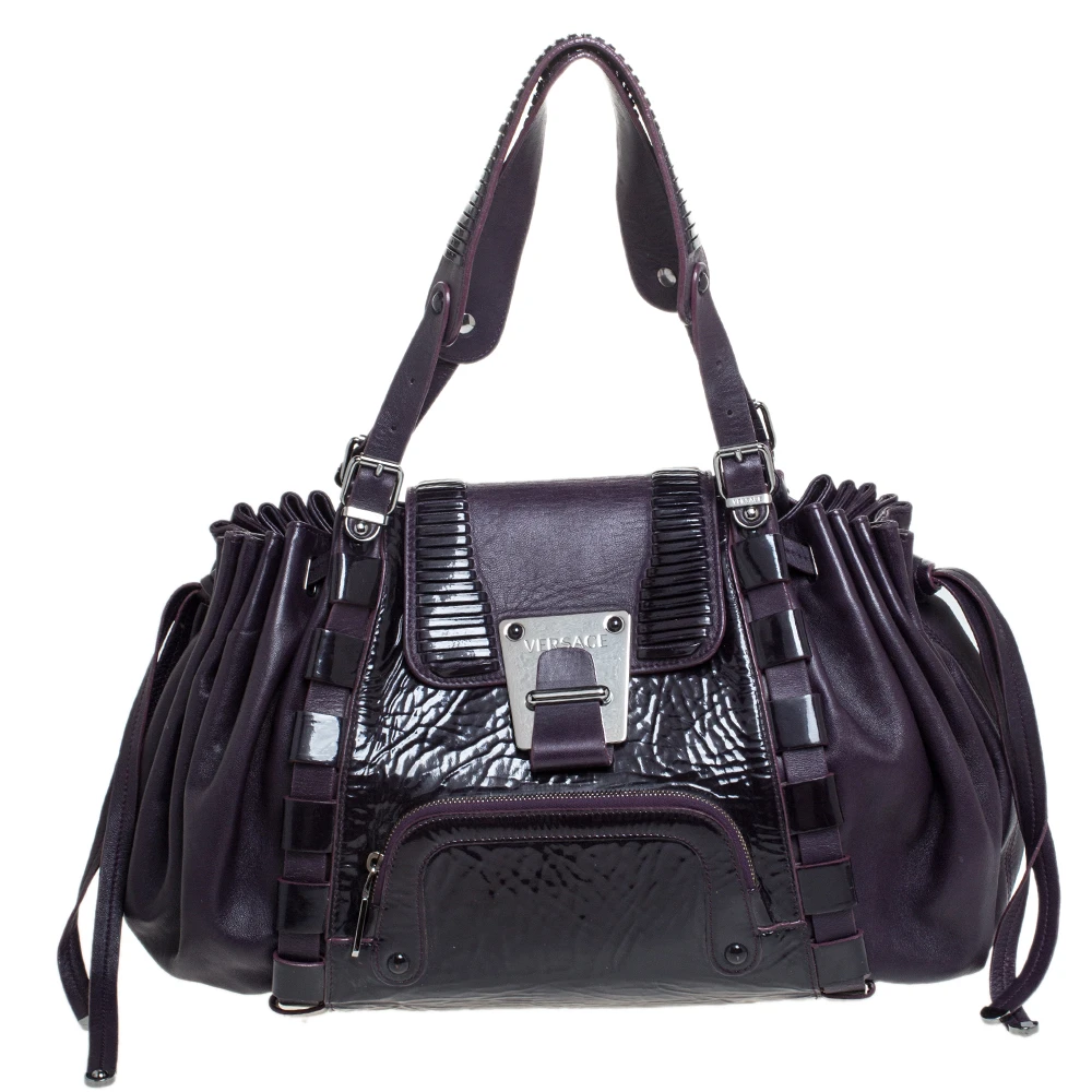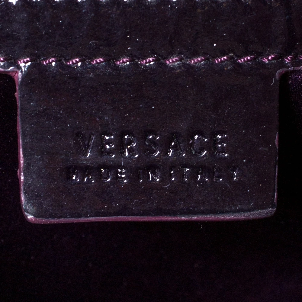 Masterfully stitched in patent leather, this bag can effortlessly hold more than just your essentials. The satin and leather interior is well-sized and the handles are easy to hold. This gorgeous shoulder bag by Versace will assist you on any day.