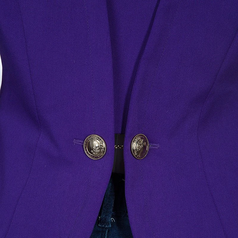Versace gives us this single-breasted blazer as the perfect counterpart to team with rugged jeans or relaxed trousers. Crafted in a polyester blend, it has a structured fit with buttoned details on its back, long notch lapels, a button closure, and front pockets.