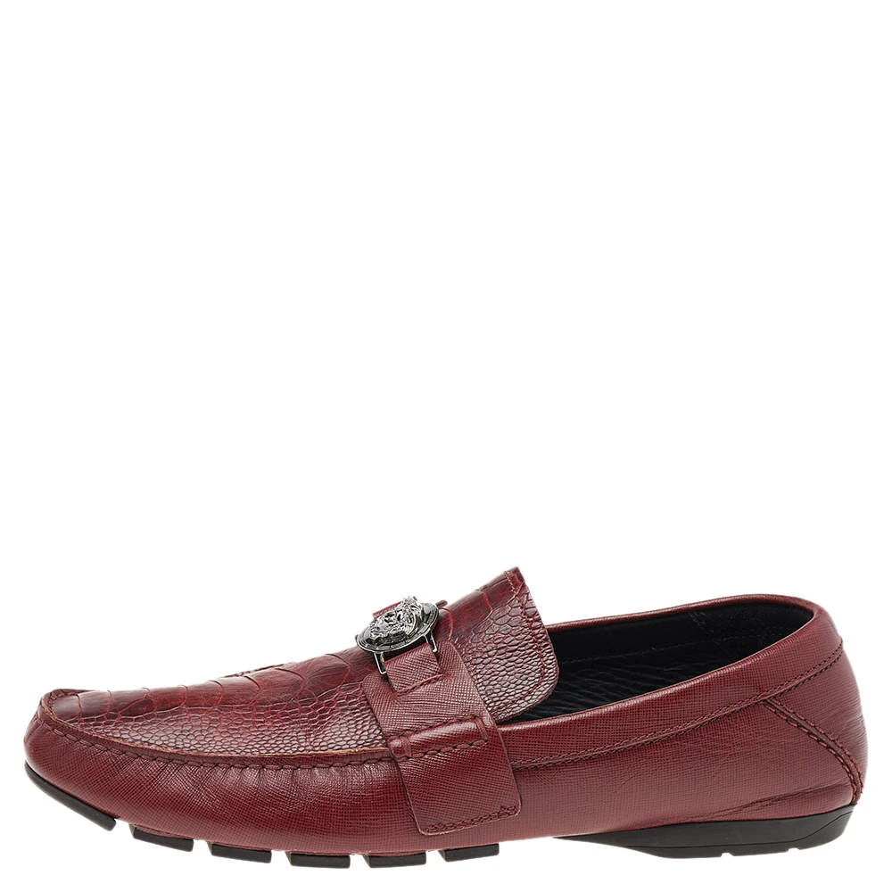 Functional and stylish, Versace’s collections capture the effortless, nonchalant finesse of the modern man. Crafted from crocodile leather in a red shade, these loafers are so comfortable you’ll never want to take them off. They are topped with the Medusa logo for a signature finish.