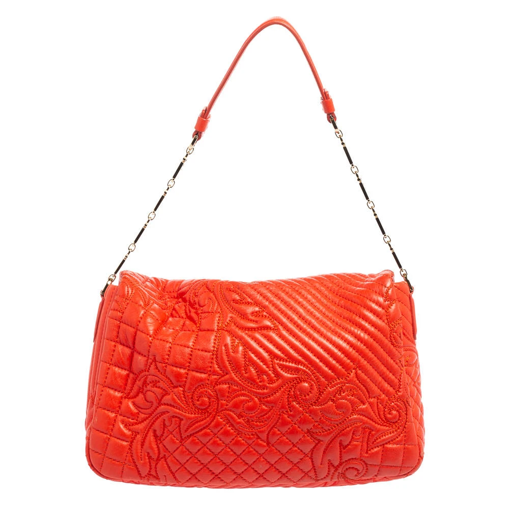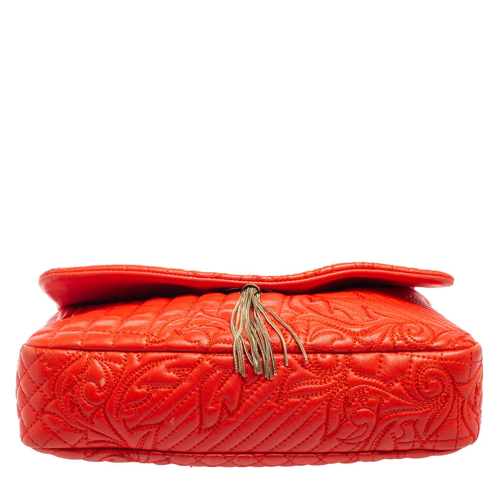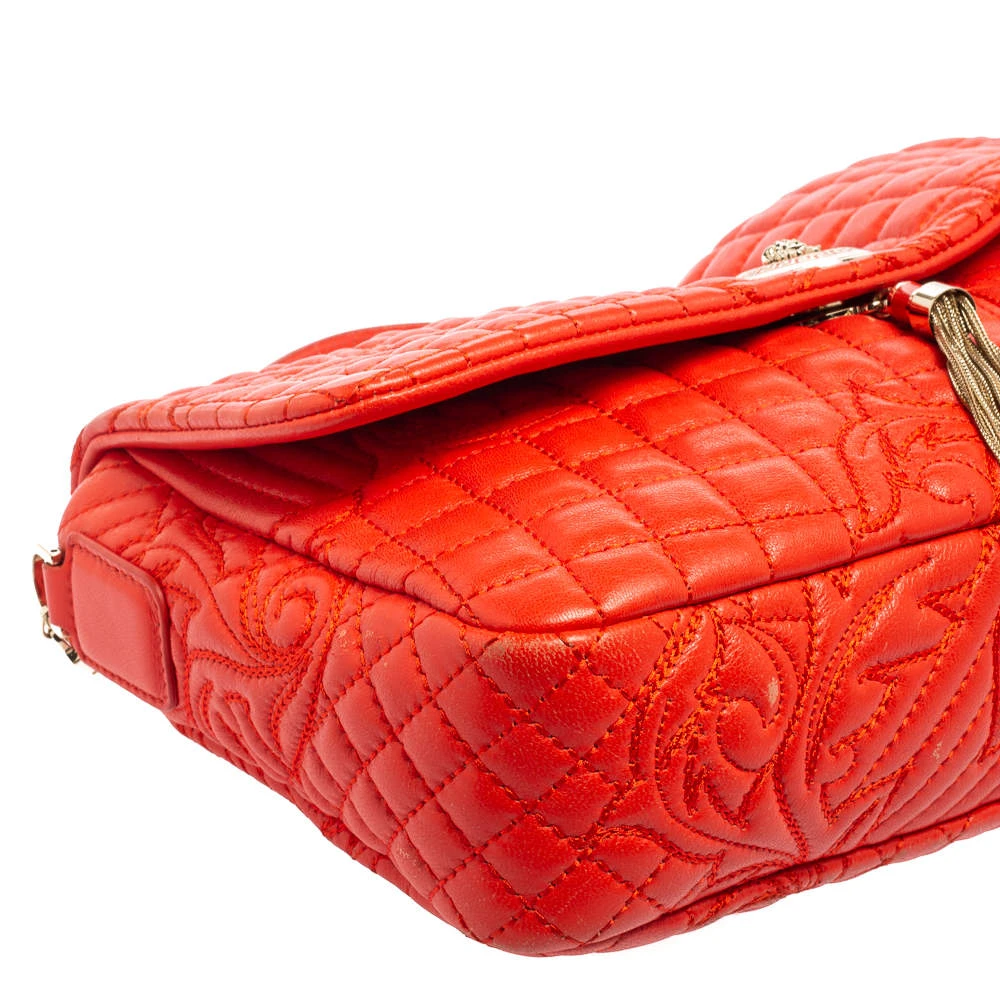 Versace brings you this Calliope Vanitas bag to make you outshine everyone else and receive never-ending compliments! The classic red bag is crafted from leather and styled with a quilted design pattern on the exterior. It flaunts a front flap with a gold-tone signature Medusa detailing and opens to a satin-lined interior that can easily carry your daily necessities. It is complete with a chain-link and leather shoulder strap. Its overall appeal is symbolic of the creativity of skilled Italian hands!