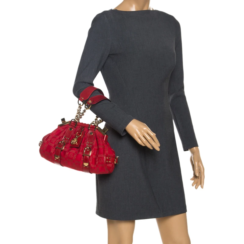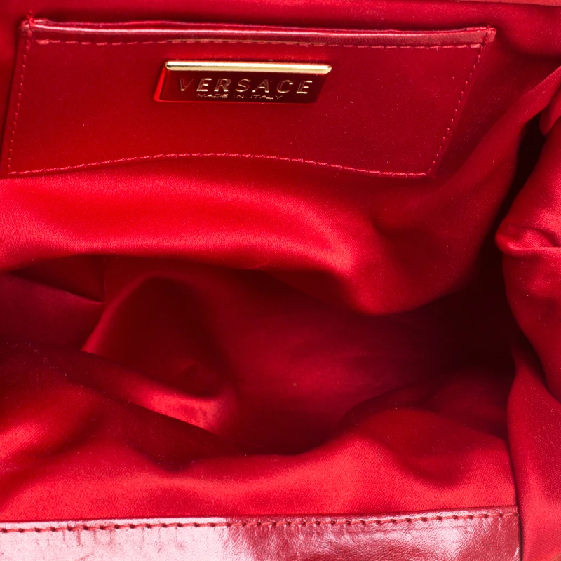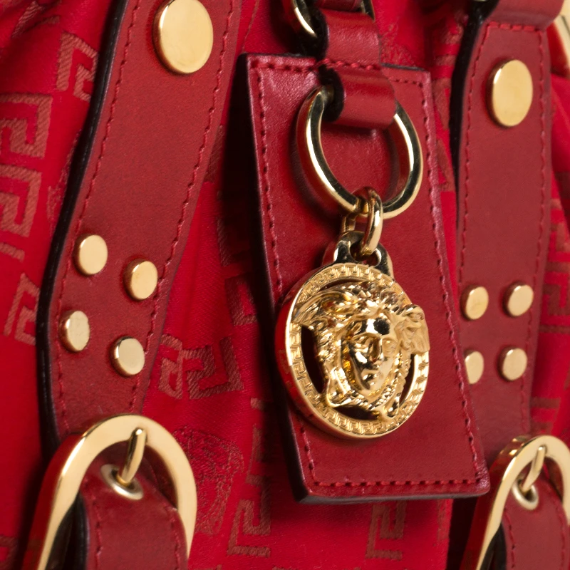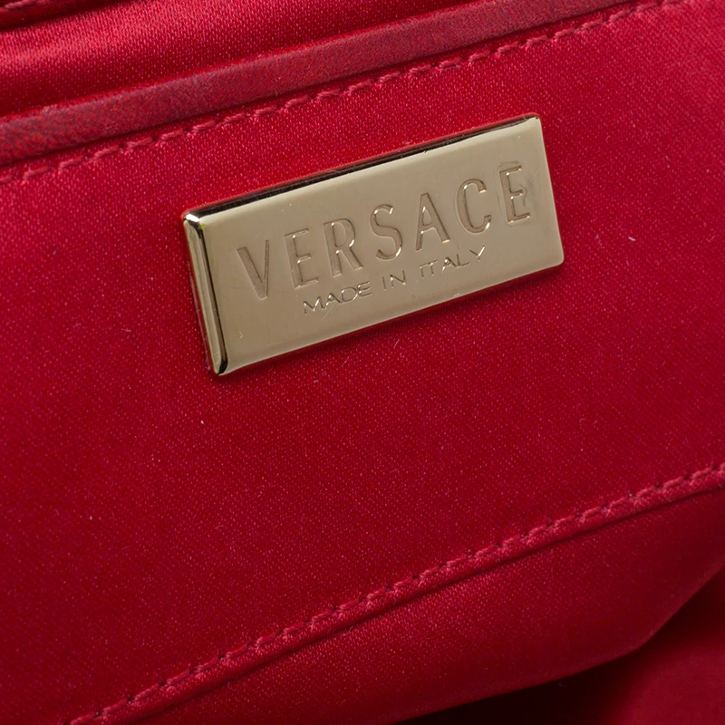 This Versace handbag is an example of the brand’s design aesthetic and quality craftsmanship. This Madonna Boston bag has been crafted in Italy and made from the brand’s signature fabric and comes in a lovely shade of red. It is styled with dual handles, leather trims, gold-tone hardware accents, satin interior with a slip pocket carrying the brand label. Grab this striking bag now!