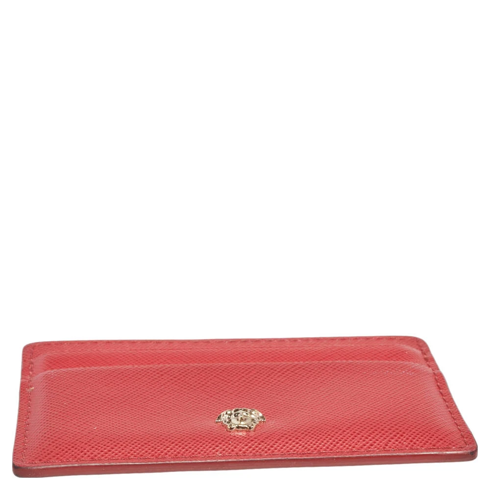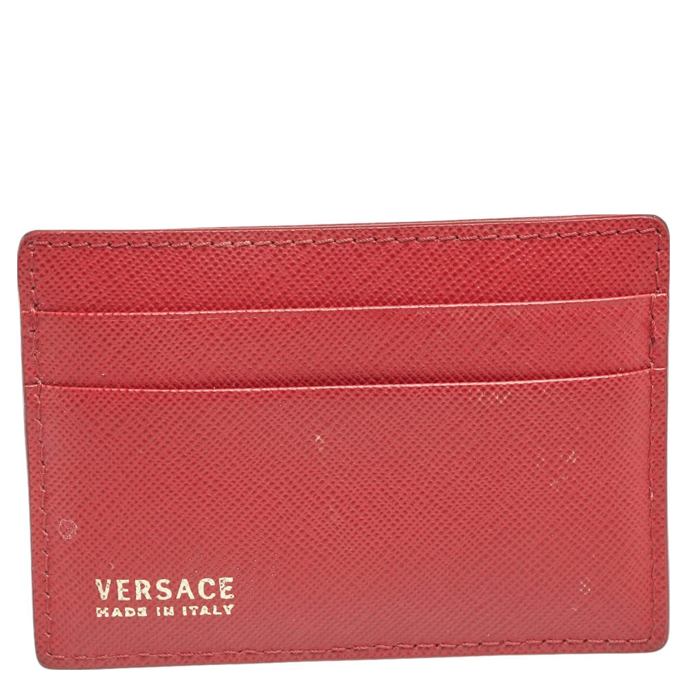Crafted using red leather, this case from Versace features the signature Medusa logo at the front and comes with lined card slots. It can easily hold your cards in an organized manner. Slip it into your everyday tote or wallet.