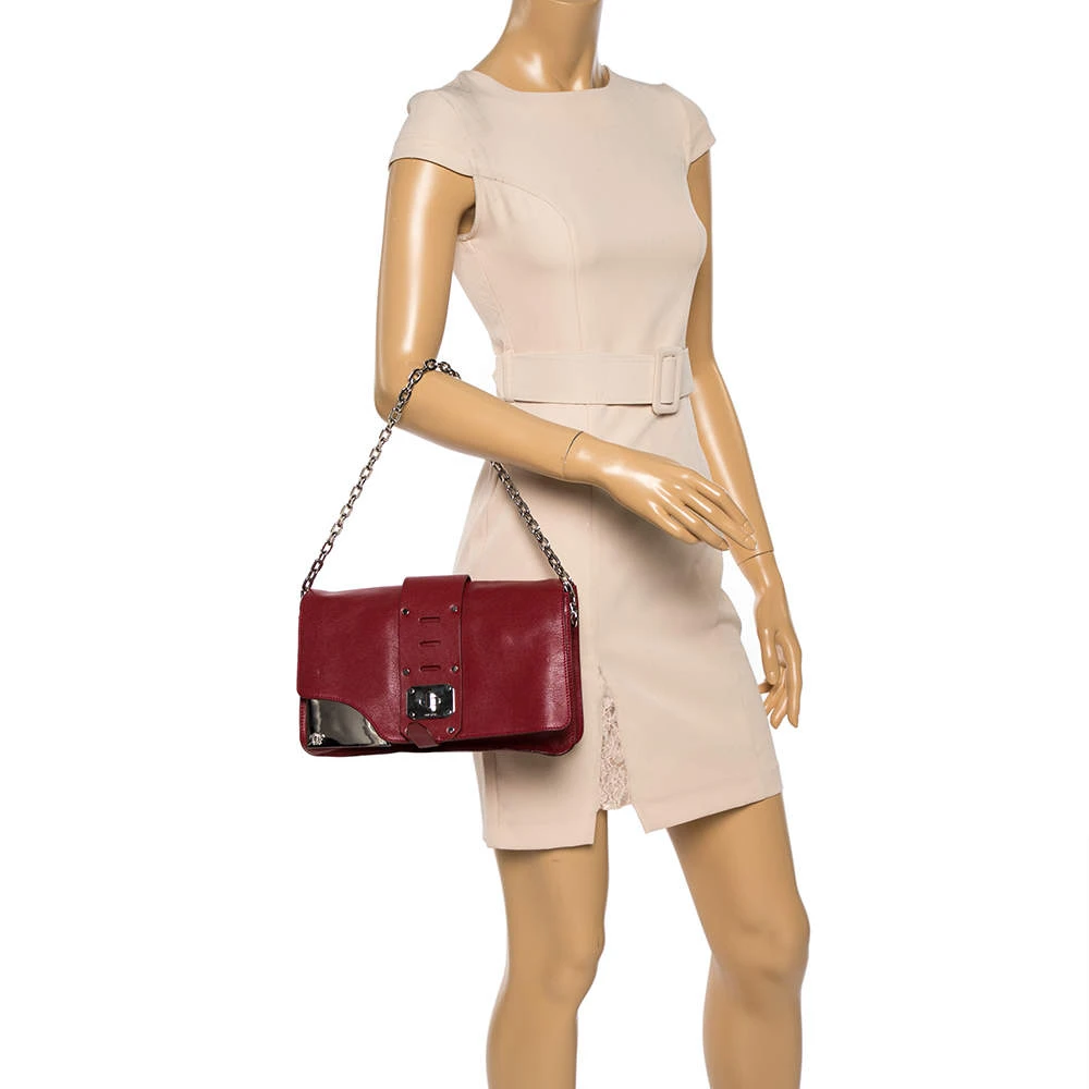 Coming from the house of Versace, this handbag is a dream come true for every fashionista. This alluring and beautifully fashioned leather handbag is surely a must-have. With an expertly lined fabric interior, this red-hued bag can accommodate all your essentials. It has a chain handle, turn-lock closure and silver-tone hardware.