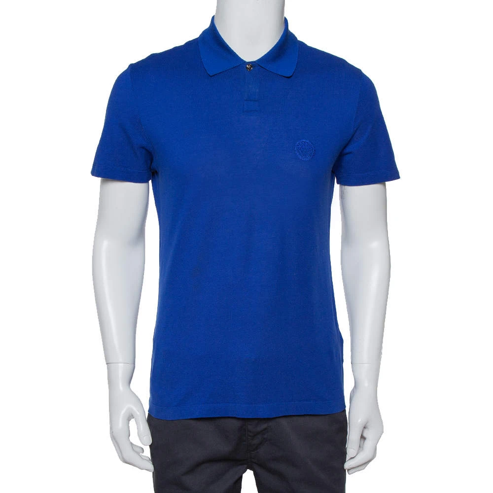 Smart T-shirts are forever in vogue and this one from Versace is utterly high on style! It is made of 100% cotton and features a royal blue shade. It is complete with the iconic Medusa logo detailing on the front, a button fastening, and short sleeves.